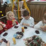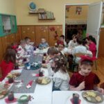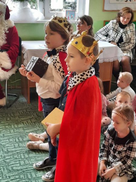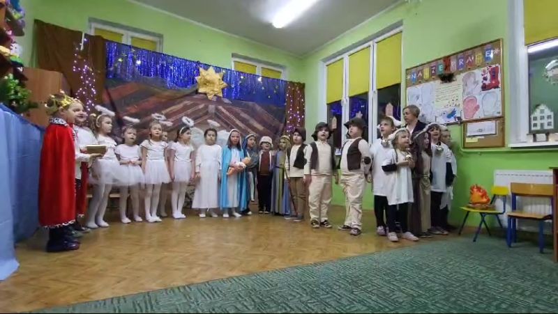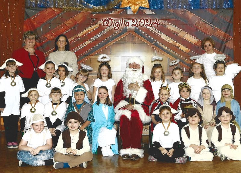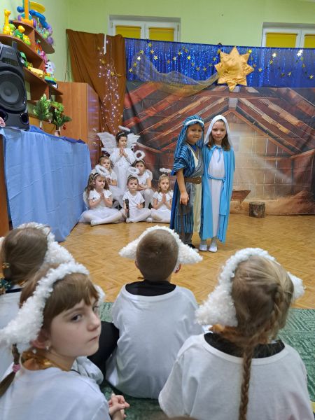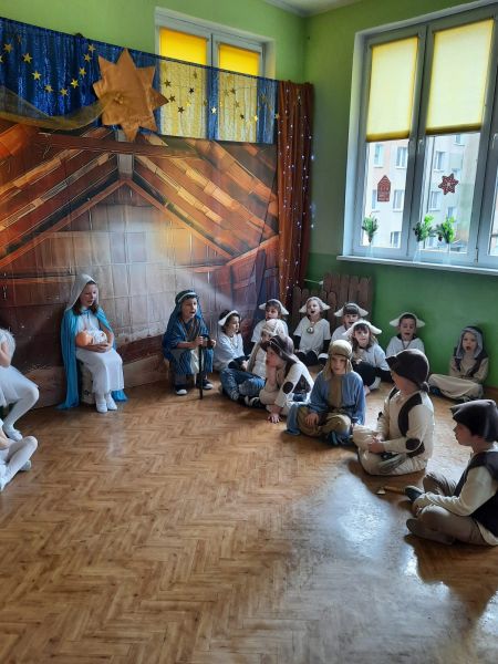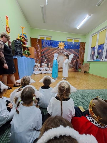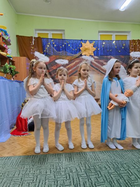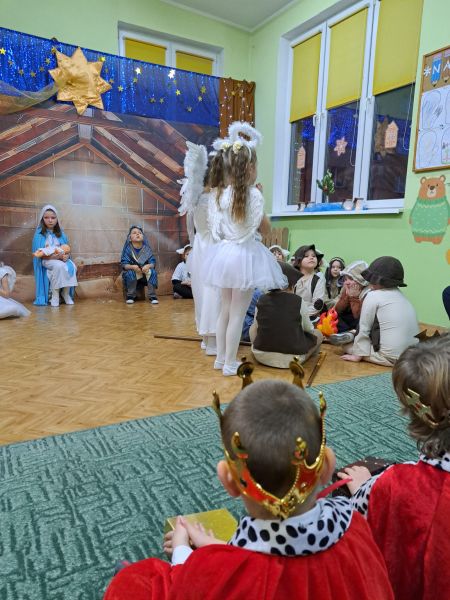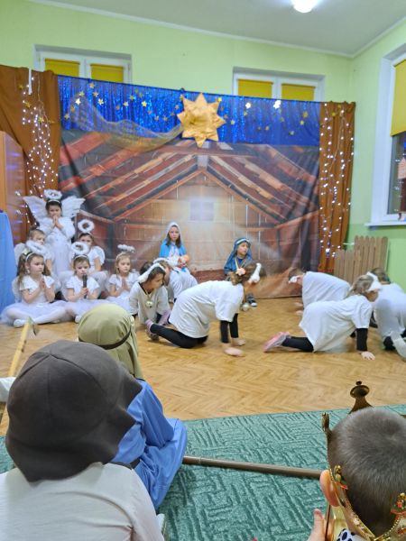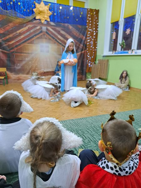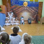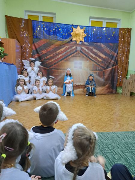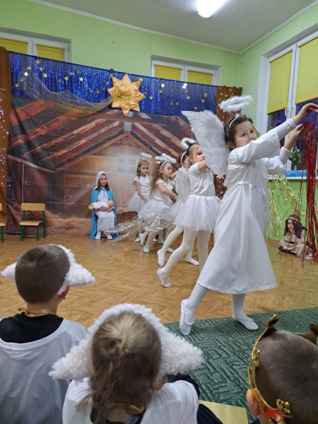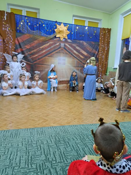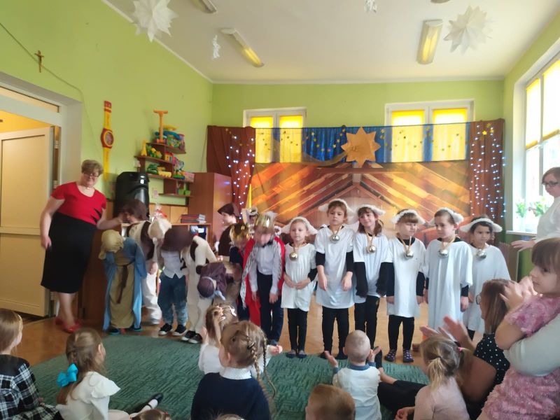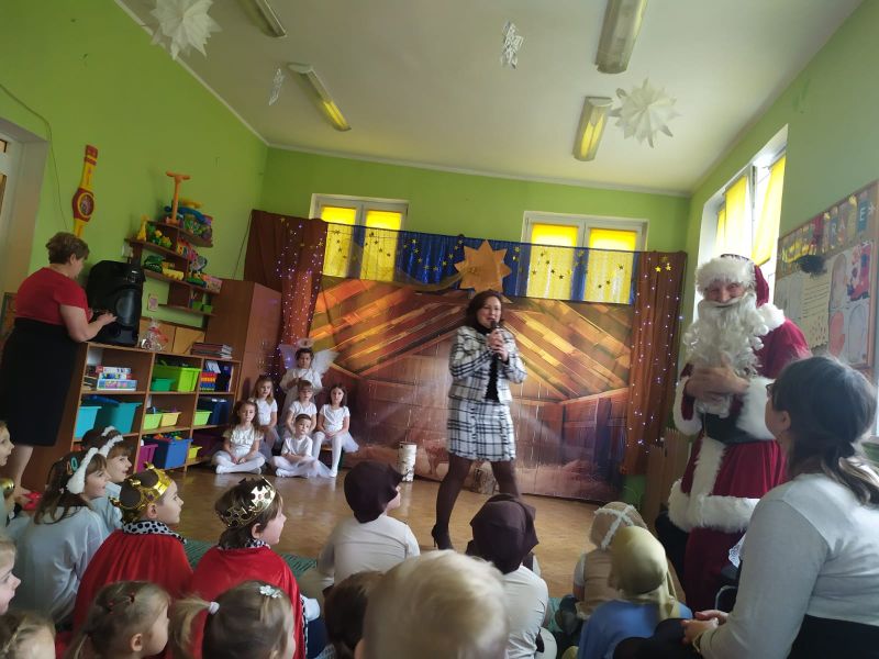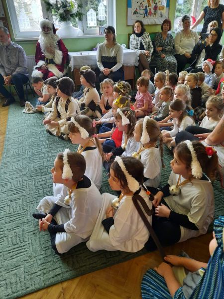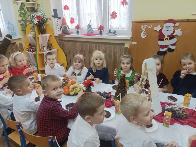 Okres świąt Bożego Narodzenia to czas pełen radości, piękna, magii i czarów. Czas spełniania marzeń i okazywania sobie wzajemnie miłości. Także u nas nastał cudowny, długo wyczekiwany dla wszystkich czas – Boże Narodzenie. To w te dni, kiedy iskrzą się lampki choinkowe odkrywamy jacy ważni jesteśmy dla siebie. JEŻYKI, które tego dnia zmieniły się w małych aktorów, opowiedziały i wyśpiewały historię cudownej nocy, Marii i Józefa szukających miejsca do schronienia na noc, narodzenia Jezuska i odwiedzających pasterzach i Królach. Gdy obejrzeliśmy Jasełka składaliśmy sobie życzenia i zasiedliśmy do wspólnego uroczystego obiadu. Nie można zapomnieć o bardzo ważnym Gościu, który przybył do nas w tym dniu. O kim mowa? Wszystkie dzieci wiedzą doskonale, że chodzi o wesołego staruszka w czerwonym płaszczu i z długą białą brodą  – Mikołaja. I tym razem o nas nie zapomniał obejrzał Jasełka i obdarował wszystkie dzieci prezentami. Cały ten dzień wprowadził wszystkich w świąteczną atmosferę, pełną radości i życzliwości.
