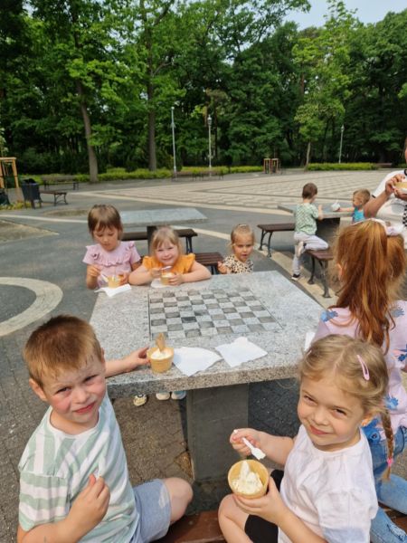 W dniu dzisiejszym dzieci z grupy „Krasnale” udały się do parku, gdzie rozkoszowały się pięknem przyrody oraz pysznymi lodami. To był dobry czas!