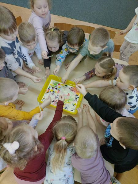 W dniu dzisiejszym 1.04.2026 do naszego przedszkola zawitał Zajączek Wielkanocny. Dzieci miały za zadanie odszukać miejsce, w którym zostawił upominki dla nich. Wszystkim grupom udało się znaleźć prezenty. Szczęśliwe wróciły do swoich sal.