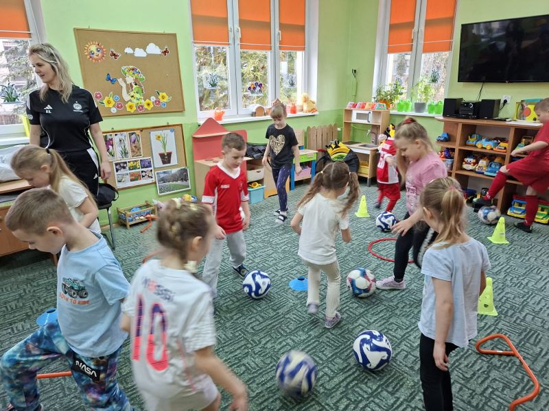 Dnia 16 marca dzieci z grup Jeżyki i Kreciki a 19 marca Myszki i Żabki , uczestniczyły w zabawach sportowych z Football Academy. Zabawy sportowe były prowadzone przez trenerów ze szkółki piłkarskiej. Były to zabawy z piłką i przyborami sportowymi. Ćwiczyliśmy refleks, współpracowaliśmy w grupach. pokonywaliśmy przeszkody. Cieszyliśmy się z dobrze wykonanego
