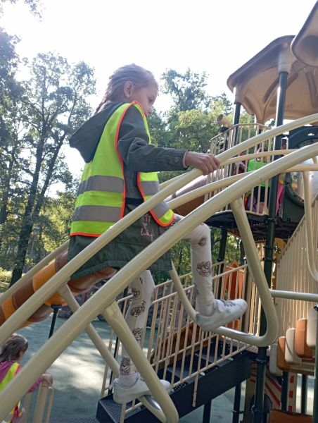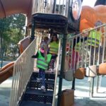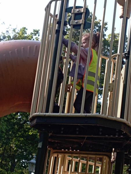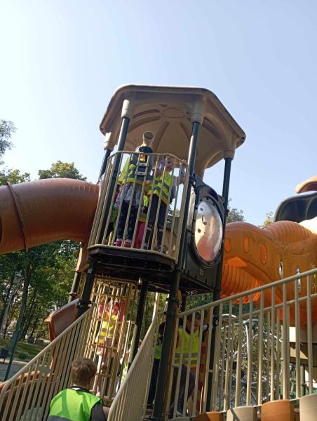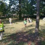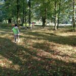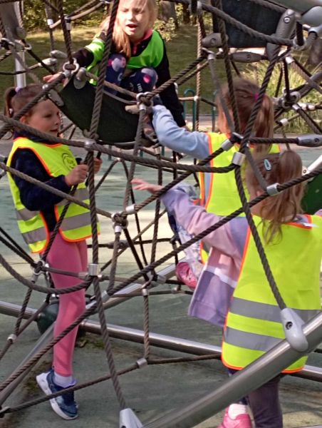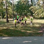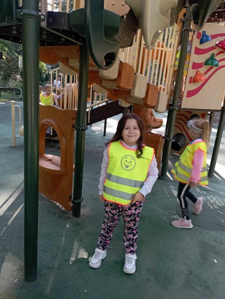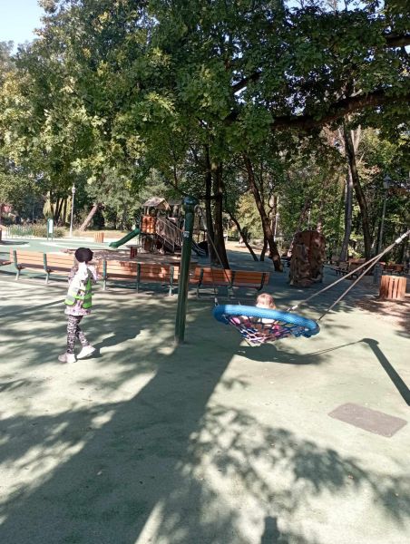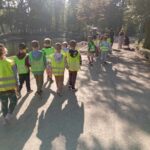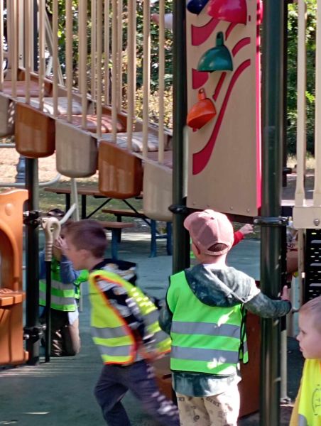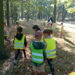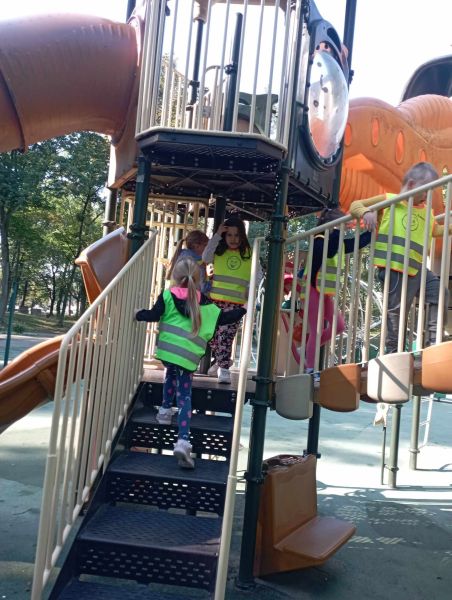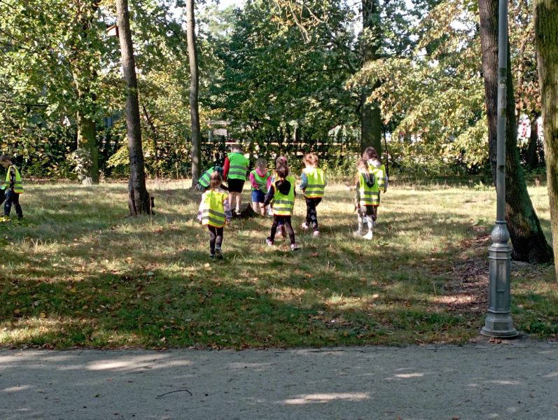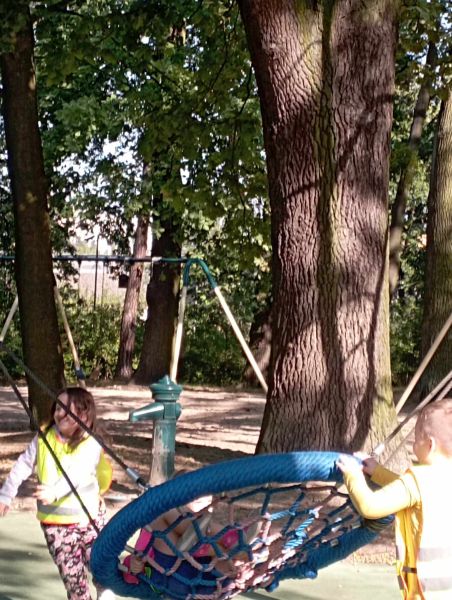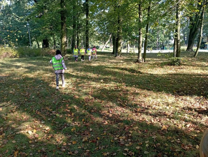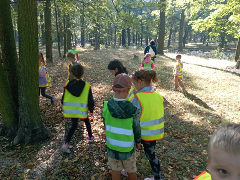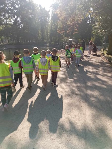 Wykorzystując piękną pogodę JEŻYKI wybrały się na spacer do pobliskiego parku w poszukiwaniu skarbów jesieni. Jak wiadomo, spacerowanie to nie tylko forma ruchu i relaksu, ale także nauki. Dowiedzieliśmy się wielu ciekawych rzeczy, podziwialiśmy otaczającą nas przyrodę i wspólnie cieszyliśmy się tym przedpołudniem. Podczas wyprawy mieliśmy okazję poznać gatunki drzew występujące w najbliższej okolicy przedszkola oraz rozpoznawaliśmy je po ich liściach. Spotkaliśmy również mieszkańców parku – kaczuszki i rudą wiewióreczkę. Na dworze początki Złotej Polskiej Jesieni i jak tu nie skorzystać z niespodzianki przygotowanej przez panią Izę – zabawy na dużym placu zabawa. Wszak ruch to samo zdrowie. W doborowym towarzystwie czas upłynął nam niezwykle szybko i w znakomitych humorach wróciliśmy do naszego przedszkola na pyszny obiad. Wszystkie jesienne skarby, które udało nam się znaleźć, zabraliśmy ze sobą do przedszkola, Po powrocie umieściliśmy nasze skarby w kąciku przyrody.