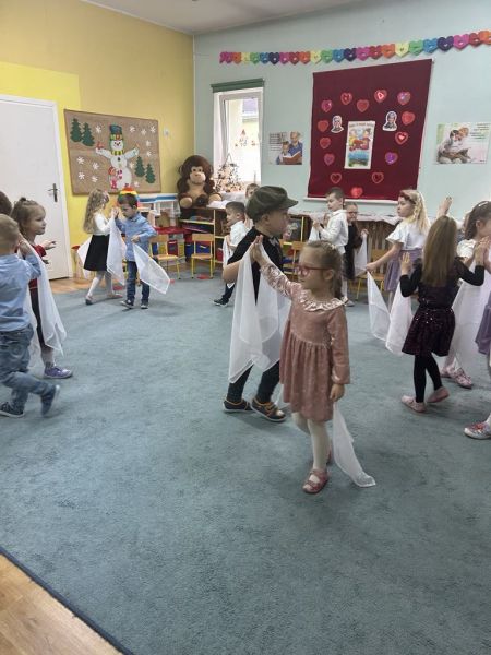 Dnia 17.01.2025. dzieci z grupy Krasnale świętowały Dzień Babci I Dziadka. Zaproszenie goście mogli podziwiać małych artystów oraz otrzymali upominki przygotowane przez dzieci.