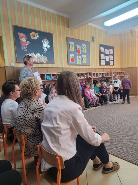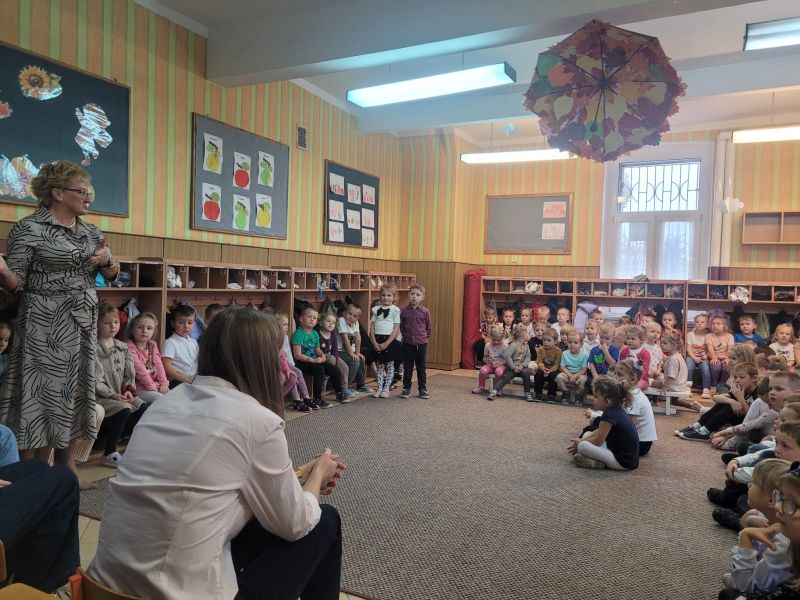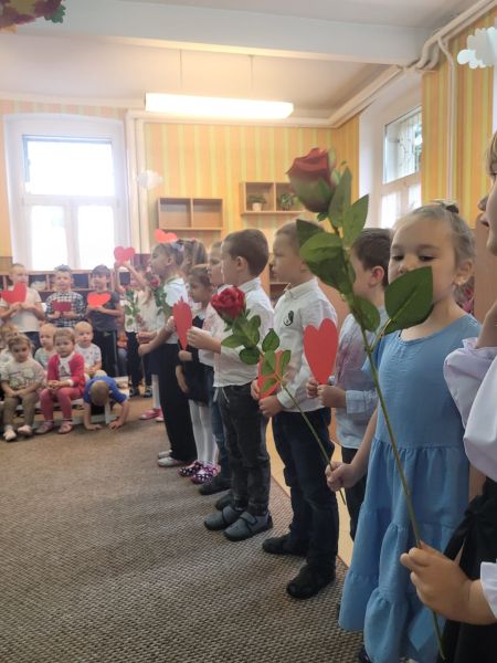 Dzień Edukacji Narodowej to szczególny dzień dla wszystkich pracowników naszego przedszkola, którzy w swojej codziennej pracy dbają by dzieci czuły się w przedszkolu dobrze, a także by miło i bezpiecznie spędzały tu czas. Z okazji Dnia Nauczyciela przedszkolaki chciały podziękować swoim ukochanym paniom i pracownikom przedszkola za trud włożony w ich wychowanie. W tym uroczystym dniu wszystkie dzieci zaprezentowały przepiękny program artystyczny, w którym nie zabrakło wierszy, życzeń i piosenek dla pracowników przedszkola.
