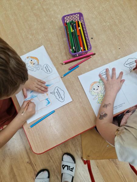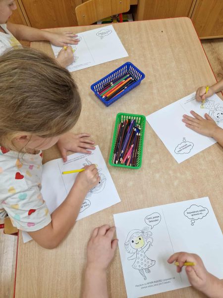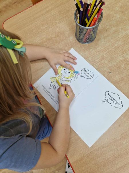 W dniu 23.09. dzisiejszym Motylki rozpoczęły swoją przygodę z Czuciakami (Ogólnopolskim Projektem wspierającym inteligencję emocjonalną). Dzieci zapoznały się z piosenką projektową, wysłuchały opowiadania o pierwszej bohaterce, która pochodzi z Wyspy Radości, odpowiadały na pytania, dotyczące tekstu. Następnie każdy przedszkolak starał się wypowiedzieć na temat radości i kiedy ją odczuwa. Zakończeniem zajęć było pokolorowanie Śmieszki (dzisiejszej bohaterki). Dzieciom zajęcia te sprawiły wielką radość:)
