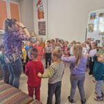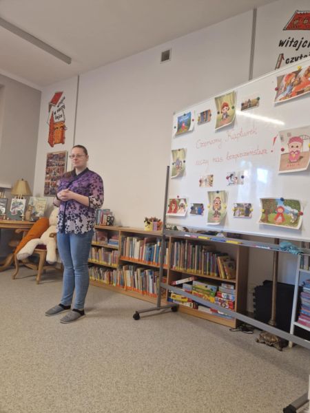 W dzisiejszym dniu dzieci z grupy Zające wybrały się do Biblioteki Miejskiej. Na miejscu czekała na nich Pani, która zorganizowała ciekawe zajęcia na temat bezpieczeństwa. Zajączki dowiedziały się również dlaczego warto korzystać z zasobów biblioteki oraz jak ważne jest czytanie książek. Dzieci wróciły do przedszkola z uśmiechniętymi buziami.