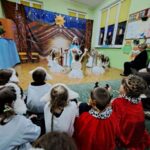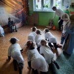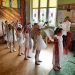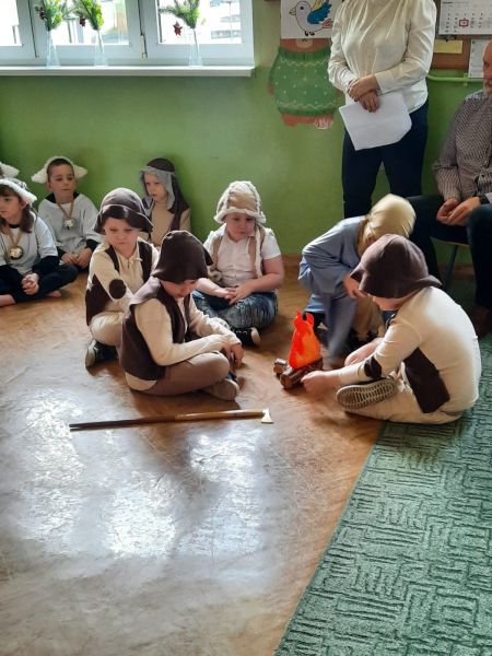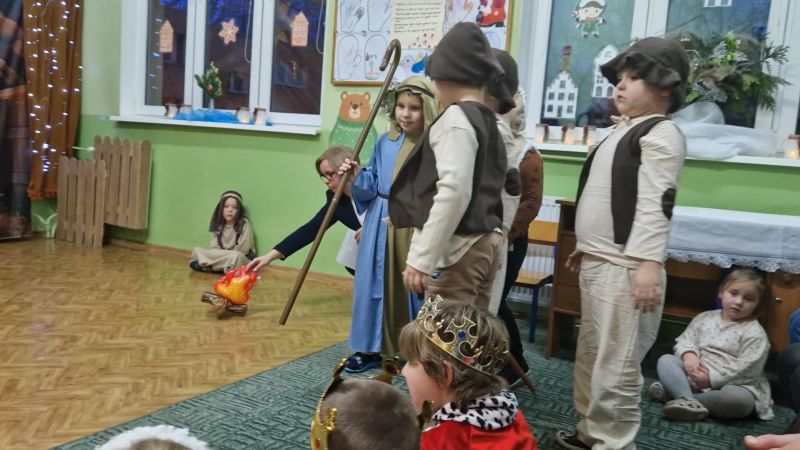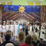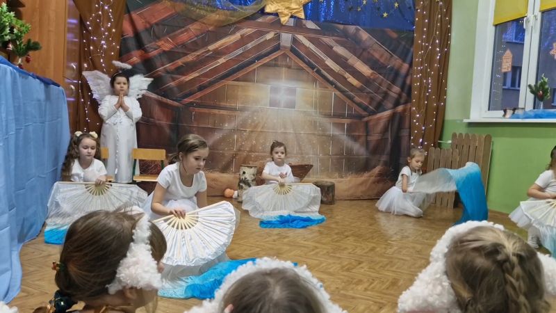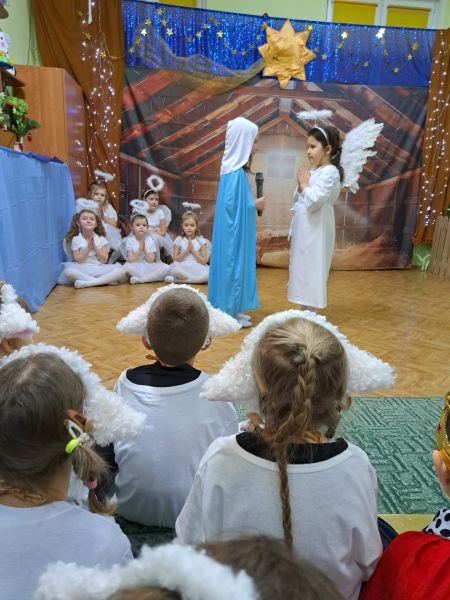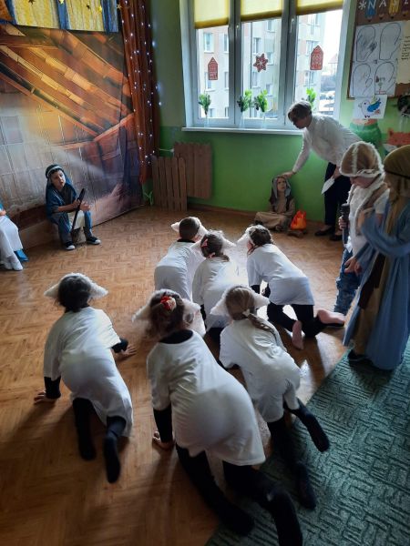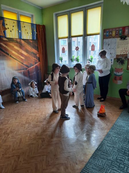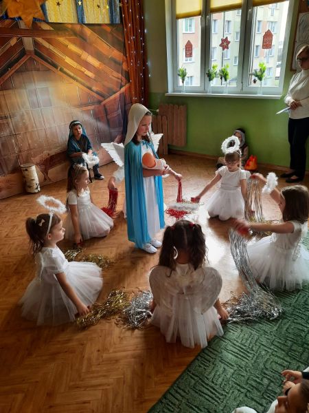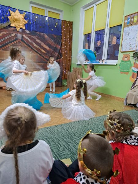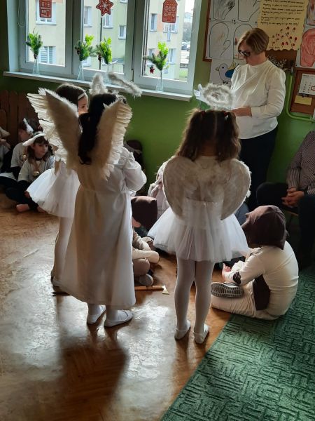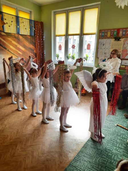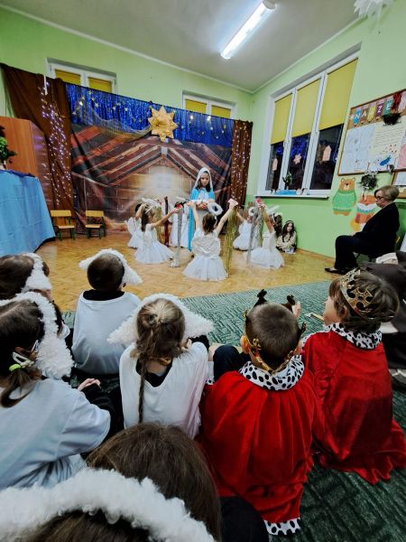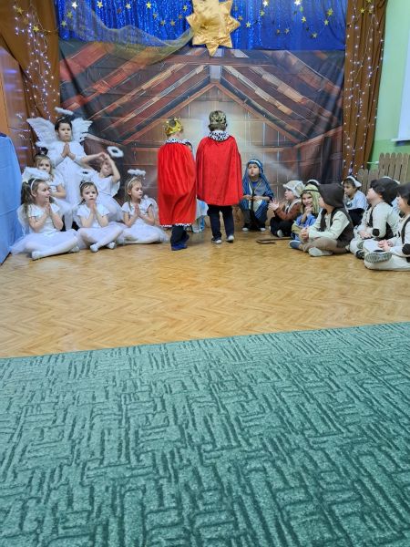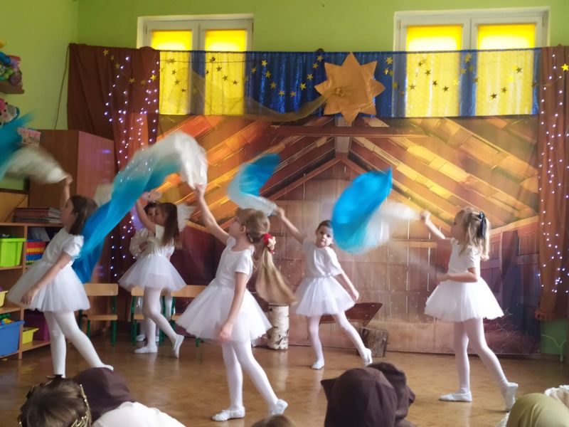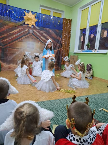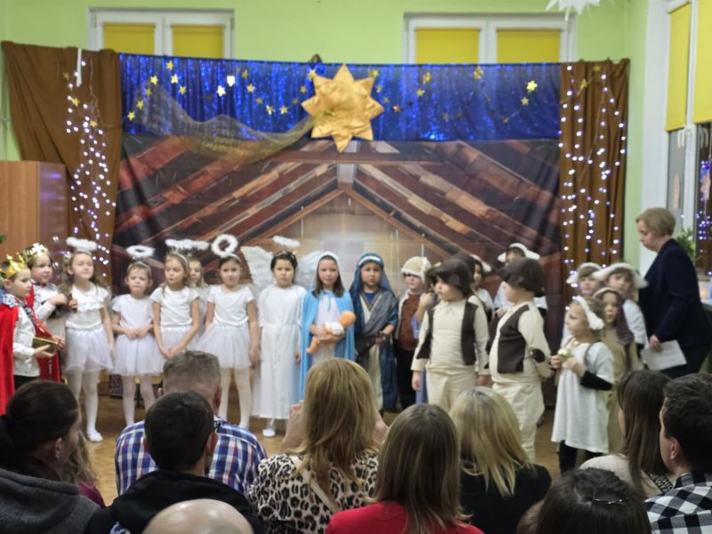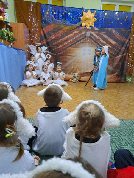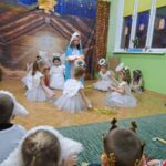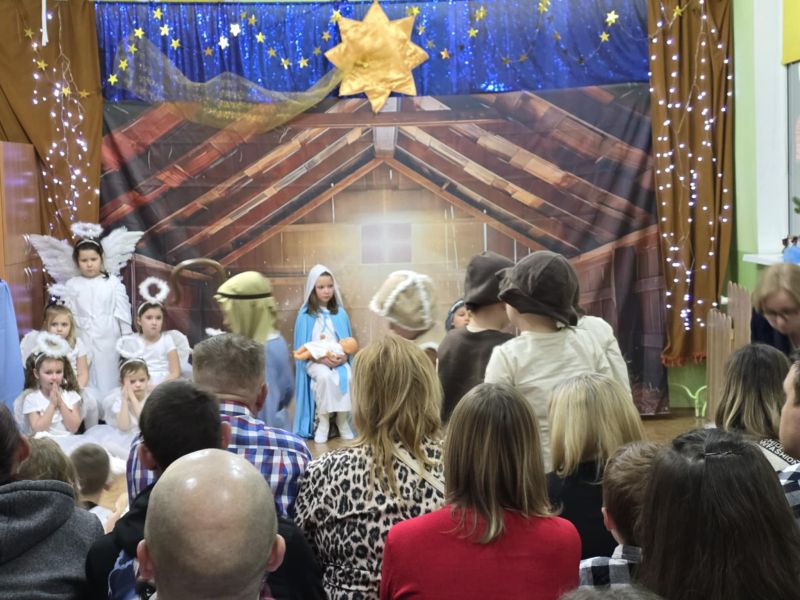 Kolejną tradycją bożonarodzeniową w naszym przedszkola jest prezentowanie jasełek naszym bliskim. Dlatego dzisiaj czyli 19 grudnia przez cały dzień przyjmowaliśmy naszych Gości: przed południem – Babcie i Dziadków a po południu naszych rodziców. Pokazaliśmy Jasełka przygotowane specjalnie na dzisiejszą uroczystość. Mieliśmy małą tremę na samym początku, ale występ był genialny (obojętnie co to znaczy, tak powiedziały Panie) Ale największą nagrodą dla nas były łzy, uściski i całuski naszych Gości. Pięknie zaśpiewaliśmy przygotowane pastorałki i kolędy, z uśmiechem spoglądaliśmy w stronę widowni… Bardzo dziękujemy, że byliście z nami, to dla Was tak się staraliśmy. Kochamy Was – bardzo mocno