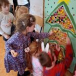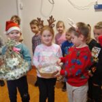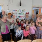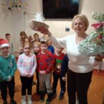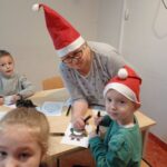 W tym roku Święty Mikołaj znalazł pomocników nie tylko w elfach, ale też w dzieciach wraz z rodzicami z naszego przedszkola. Zarówno w akcjach charytatywnych „Herbatka dla Seniora” i „Kartka dla Seniora”, jak i wykonanie pięknych upominków dla Seniorów oraz – finalnie poprzez odwiedziny w Dziennym Domu Pomocy przy ulicy Piłsudskiego. A wszystko to połączonymi siłami – Pani Eweliny (która zainicjowała i przeprowadziła akcję „Herbatka dla Seniora”) oraz moimi w ramach innowacji „Język angielski łączy pokolenia”. Zawitaliśmy z grupą Motyli wraz Panią Eweliną, Elą i Karoliną u Seniorów dnia 8.12.2025 r. uzbrojeni w dobre humory i chęci do działania, z ważną mikołajkową misją i na zaproszenie na wspólne świąteczne warsztaty. Przedstawieni przez Pana Kierownika – Bogdana Bojarskiego i zachęceni gorącymi oklaskami, wystąpiliśmy ze świątecznym mini-programem o charakterze tanecznym, wokalnym i recytacyjnym. Klimat świąt wzbogaciliśmy takimi elementami jak wielki plakat ze Świętym Mikołajem w saniach z reniferami, rozwieszony na oknie, obraz z elementami świątecznymi, tańczący na suficie z rzutnika w klimatycznie przyciemnionym pomieszczeniu, dźwięki janczarków, grzechotek, kolorowe chusty i duże bombki, oraz zabawna postać Mikołaja, które pojawiły podczas piosenek i wiersza. Rzecz jasna w naszym występie tradycyjnie przeplatały się dwa języki – język angielski i polski. Na koniec części artystycznej otrzymaliśmy gromkie brawa oraz prezent: zabawną ozdobę / stroik świąteczny przedstawiającą nogi elfa, wystające z czapki mikołajowej. My również mieliśmy coś dla Seniorów – nasi przedstawiciele dziecięcy, jako Mikołaj i renifer, wręczyli na ręce przedstawicielki DDP ze strony Seniorów stroik świąteczny, a także upominki w formie zawieszek, wykonane przez jedną z mam. Natomiast w ręce Pana Bogdana przeszły dwie wielkie torby – jedna z aromatycznymi herbatkami i kawą, druga zaś ze słodyczami. Po występie Mały Mikołaj wraz z reniferem wybrali się z wielkim workiem do poszczególnych pokoi, gdzie wręczali Seniorom kartki z życzeniami wykonane przez dzieci i rodziców. Każda kartka budziła zachwyt, każda sprawiała radość i była źródłem wzruszenia, które błyszczały w oczach obdarowywanych, ciepłym blaskiem. Uczucie piękne, magiczne, którego nie sposób opisać słowami… Potem zaś, pod okiem sympatycznej Pani Instruktor i uzdolnionych manualnie Seniorów odbyły się warsztaty, podczas których w tle mieliśmy okazję posłuchać tworzących klimat świątecznych piosenek. Wszyscy zaangażowali się w pracę nad kolorowankami świątecznymi, przy pysznym pierniczkowym poczęstunku i gorący soku. Potem dzieci wraz z dorosłymi ozdabiały wielki szablon choinki bombkami z kuleczek krepy, z gotowe kolorowanki zostały powieszone wokół niej jako mikołajkowa galeria. W międzyczasie były też swobodne tańce do znanych świątecznych piosenek. Wraz z chętnymi przedszkolakami i Seniorami wykonaliśmy pamiątkowe, grupowe zdjęcia. Na koniec złożyliśmy sobie wszyscy życzenia i zostaliśmy zaproszeni przez Pana Kierownika w imieniu wszystkich Seniorów i pracowników na kolejne spotkanie, już po Nowym Roku. Tak jak za każdym razem – tak i teraz, coraz wyraźniej, budują się relacje, więź pomiędzy dziećmi a Seniorami. I jest to wyjątkowy widok, którego nie uchwycą w pełni zdjęcia czy filmiki. To trzeba zobaczyć. Na własne oczy. Tak wygląda prawdziwa magia – nie tylko ta świąteczna… Zapraszam do fotorelacji.
