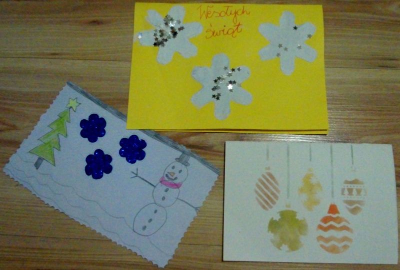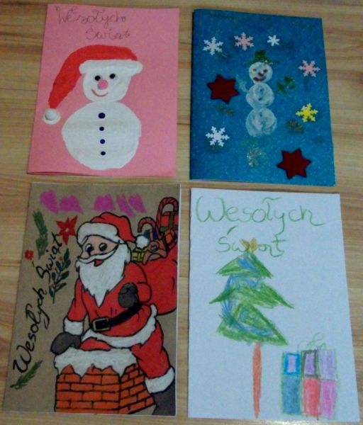Kartki trafią do pensjonariuszy z Dziennego Domu Pomocy przy ulicy Piłsudskiego 111 podczas wyjazdu grupy Biedronek na warsztaty świąteczne.