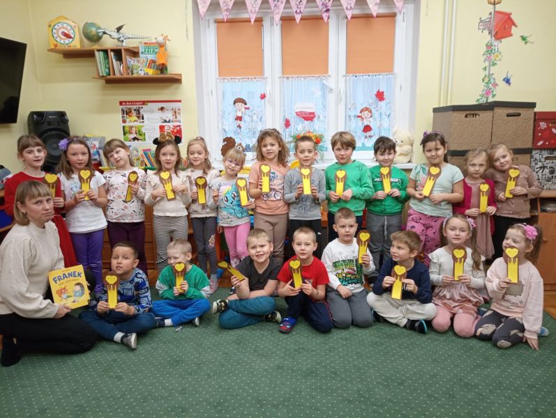Mama Szymona z grupy JEŻYKI przeczytała bajkę pt. Franek mówi dzień dobry. Jeżyki zaś zrobiły zakładkę do książki