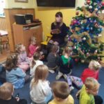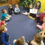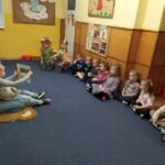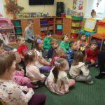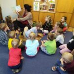 Mama Jessici z grupy ŻABKI przeczytała bajkę pt. „Kici Kocia”.