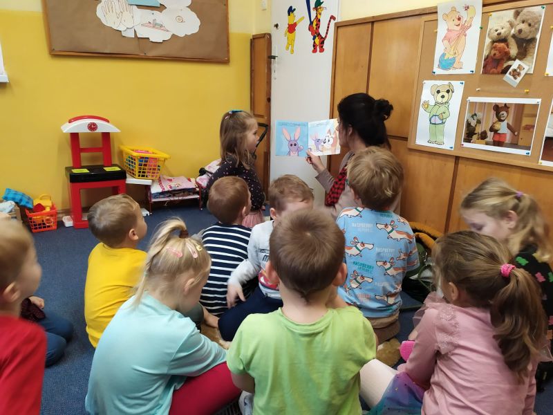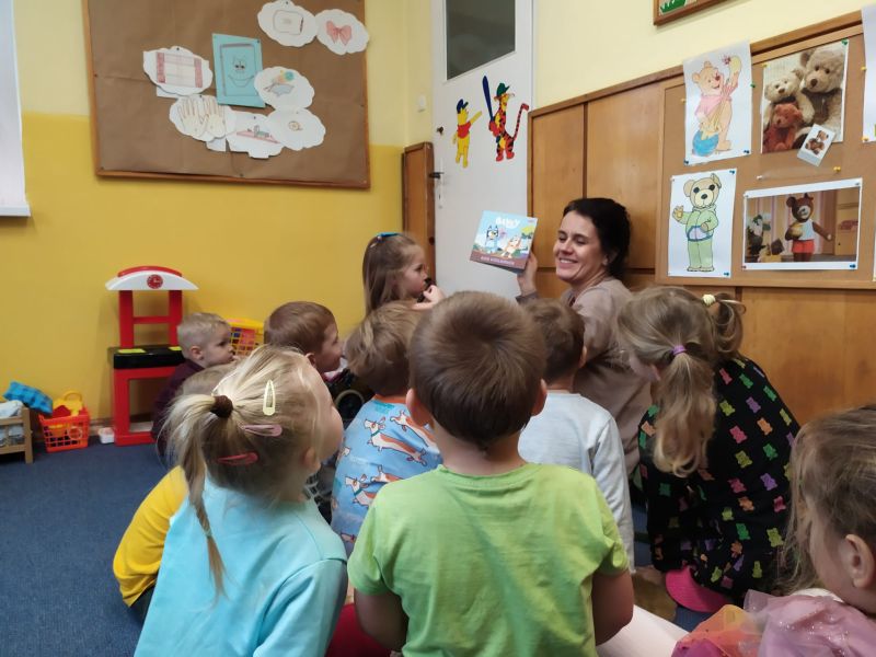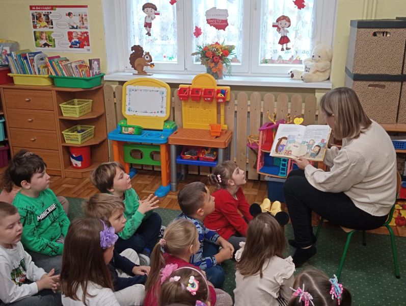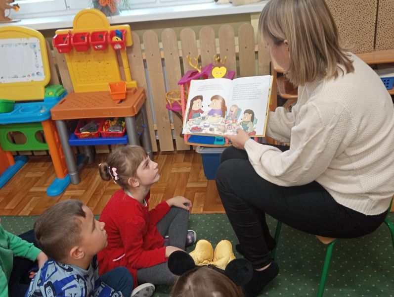 Mama Olka z grupy ŻABKI przeczytała bajkę pt. „Dziecięce uczucia. Naucz się pomagać innym„.