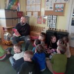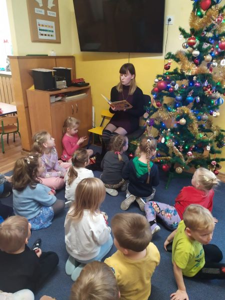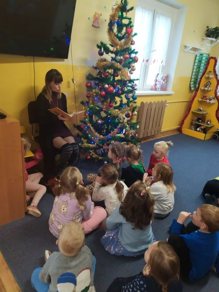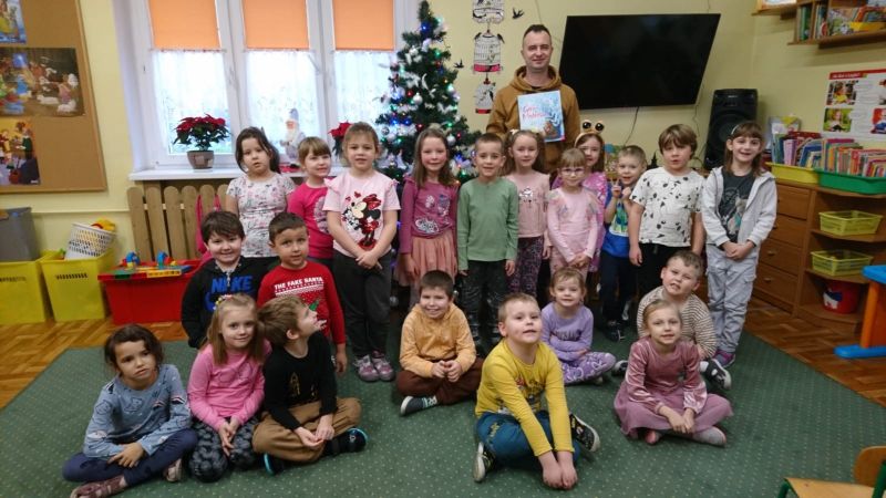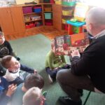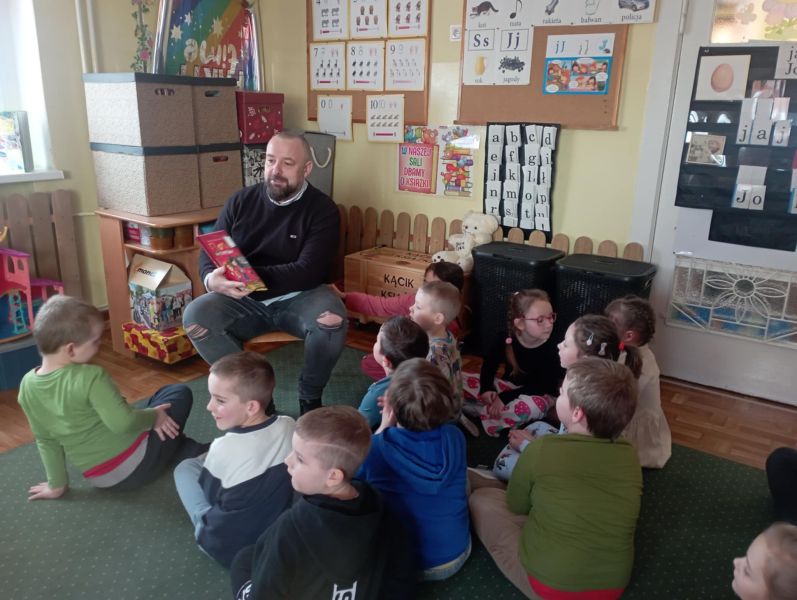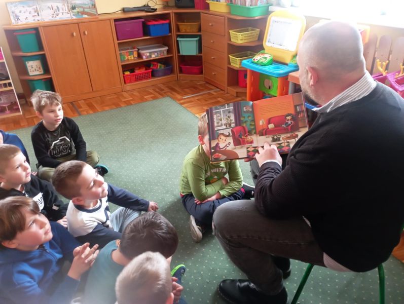 Tata Klaudii z grupy JEŻYKI przeczytał baśnie pt. „Szewczyk Dratewka” „Stoliczku nakryj się”, oraz jednej z legend polskich „O królu Popielu”