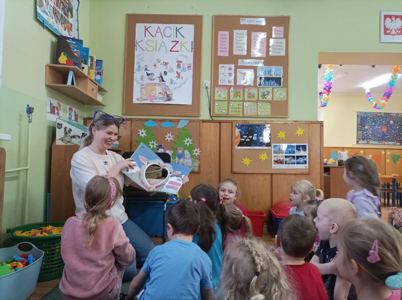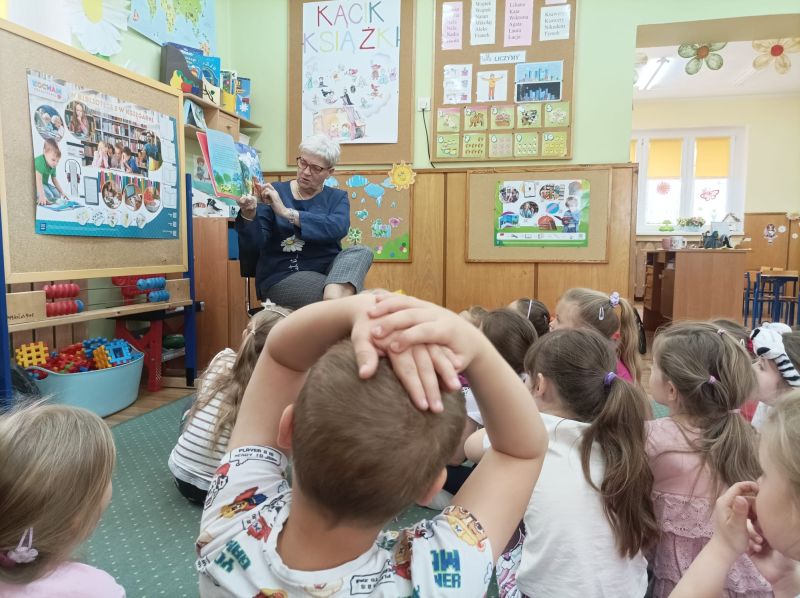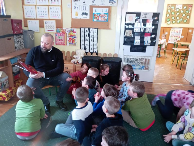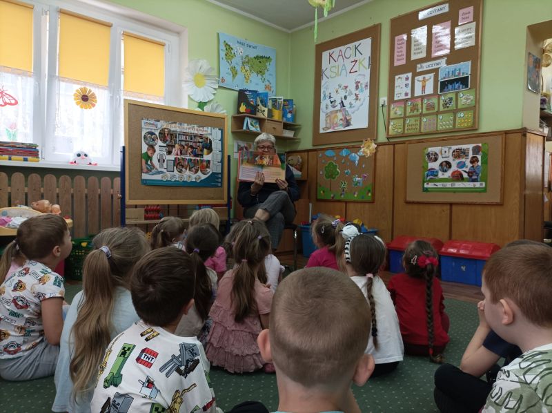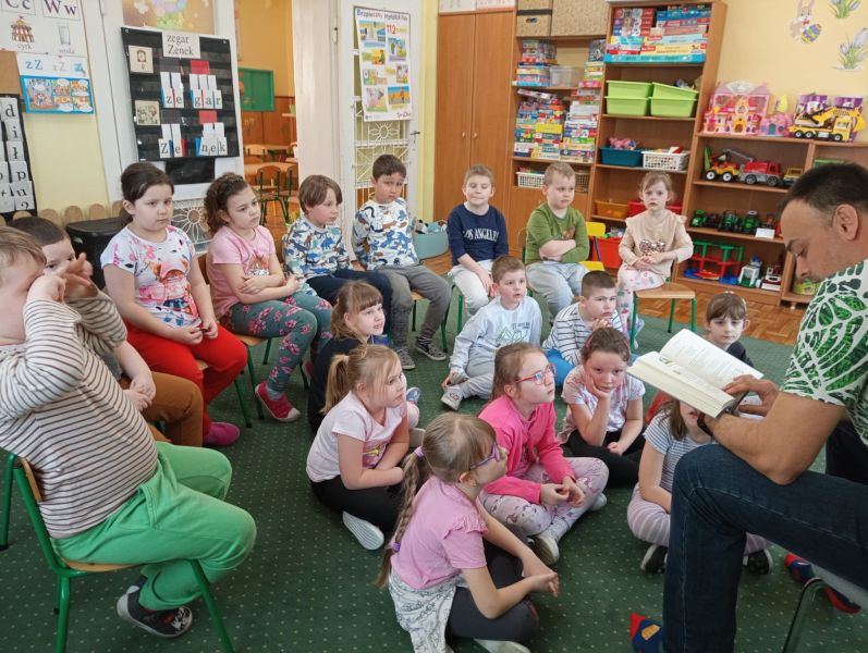 Projekty rozpowszechniają również akcję wspólnego czytania w grupie Jeżyki, do której zapraszamy osoby związane z przedszkolem oraz rodziców. Rodzice chętnie przychodzą aby wprowadzać dzieci w świat literatury.