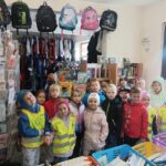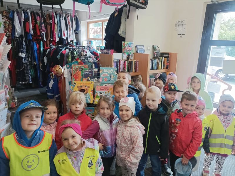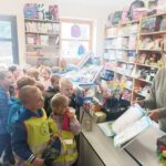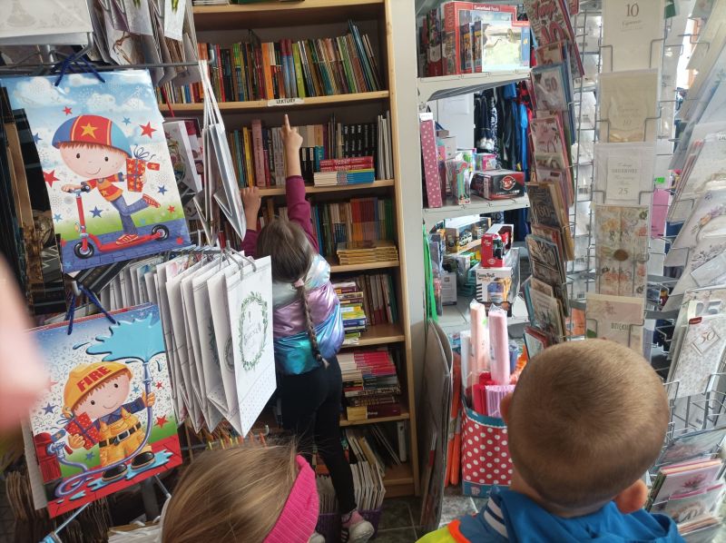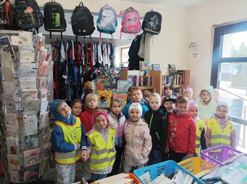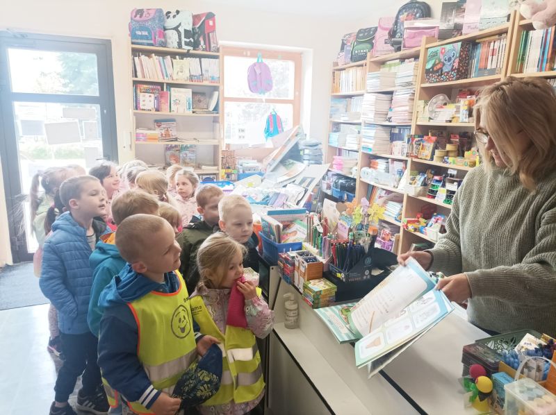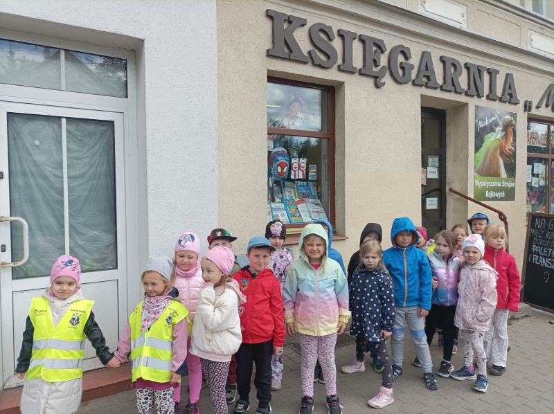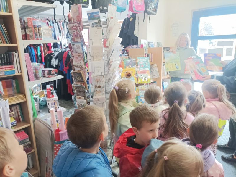 „KRECIKI” w księgarni – ul.Kalinkowa 11 maja 2025 „Wizyta w księgarni”. Dzisiaj przed obiadem wybraliśmy się na wycieczkę do księgarni. Mieliśmy okazję zobaczyć ilość książek i obserwować panią w księgarni. Pani pokazała nam różne książki i lektury dla dzieci, uczniów i przybory plastyczne.