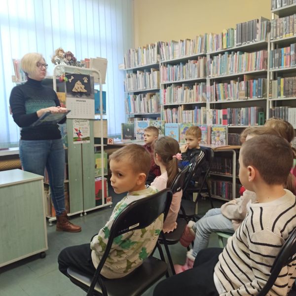 W dniach 3 i 4 grudniaKubusie i Sowywybrały się do pobliskiej biblioteki. Były to pierwsze zajęcia rozpoczynające systematyczną współpracę z biblioteką w tym roku szkolnym. Dzieci przypomniały sobie zasady funkcjonowania oraz zachowania się w tym miejscu, wysłuchały również krótkiej bajki przeczytanej przez panią bibliotekarkę.