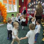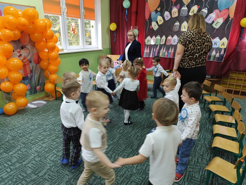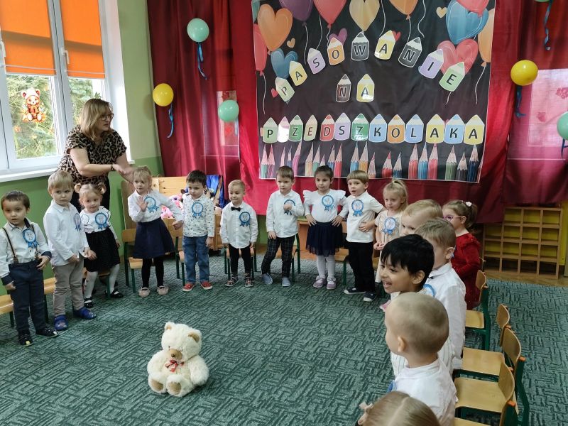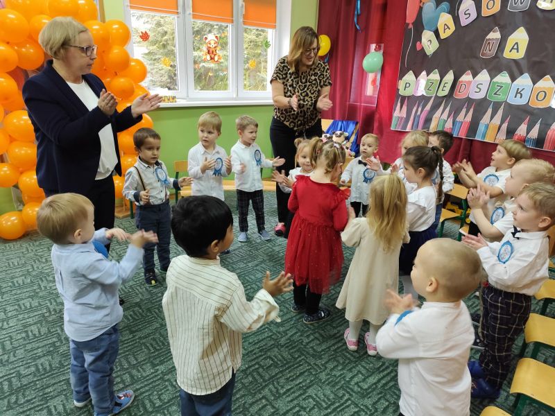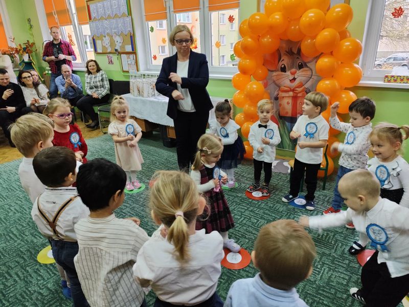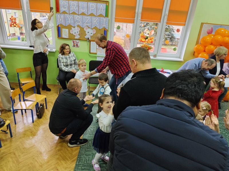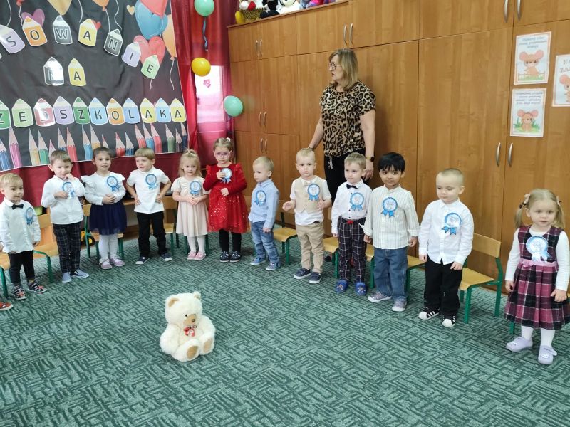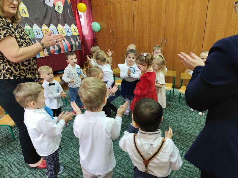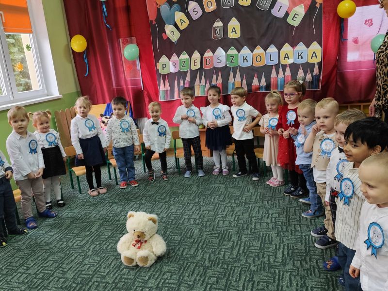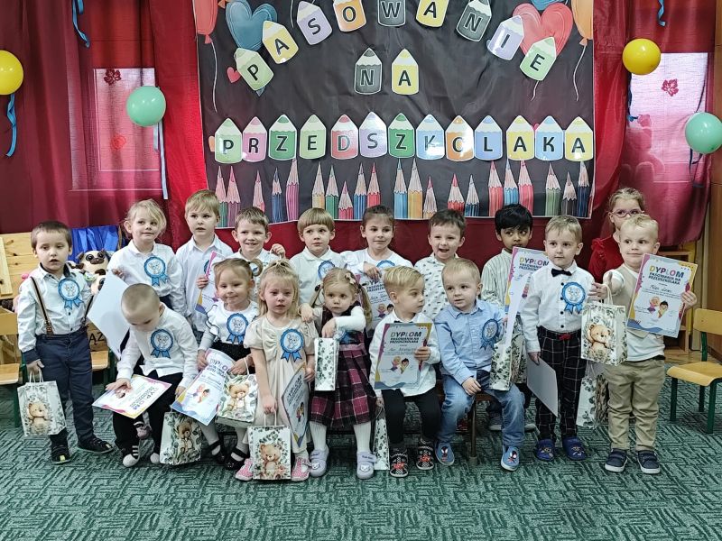 Zgodnie z planem dzisiaj u Myszek odbyła się mega impreza, czyli Pasowanie na Przedszkolaka. Bardzo byliśmy przejęci, ponieważ po raz pierwszy występowaliśmy przed publicznością i to nie byle jaką. Do przedszkola przyszli nasi rodzice, a także dziadkowie, strasznie jacyś przejęci. A przecież to MY troszkę przestraszeni i stremowani stanęliśmy na przedszkolnej scenie – wyrecytowaliśmy wiersz i zaśpiewaliśmy piosenki, zatańczyliśmy sami i z rodzicami. Później nadszedł ten najważniejszy moment, kiedy Pani Dyrektor wielką zaczarowaną kredką pasowała każdego z nas na przedszkolaka, dostaliśmy dyplom i od tej pory każda Myszka jest prawdziwym przedszkolakiem, a i debiut sceniczny mamy zaliczony!