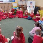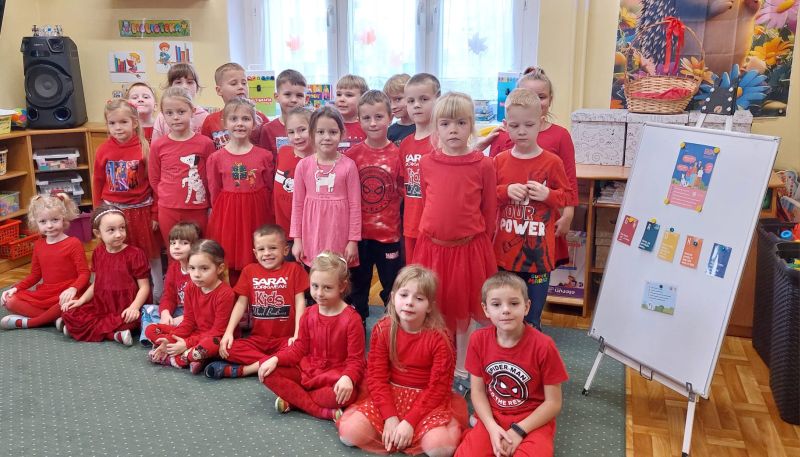W dniu 19 listopada 2025 r. w Przedszkolu Miejskim Kopernik wszystkie grupy wzięły udział w Ogólnopolskiej Kampanii Dzieciństwo bez Przemocy. Tego dnia przedszkolaki przyszły ubrane na czerwono, aby w symboliczny sposób wyrazić swój sprzeciw wobec krzywdzenia najmłodszych. W grupie ,,Jeżyki” i „Kreciki” w ramach finału kampanii przypomniano i omówiono z dziećmi pięć ważnych zasad z programu ,,Gadki”.