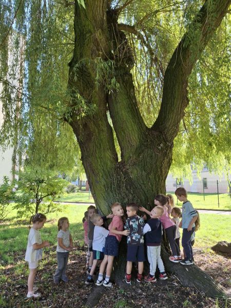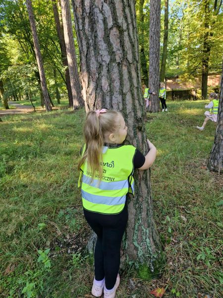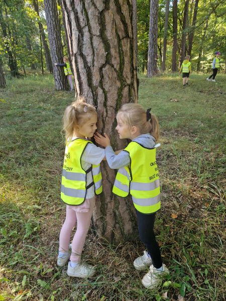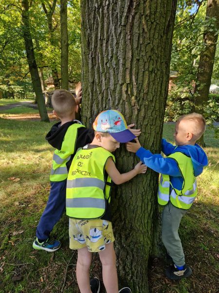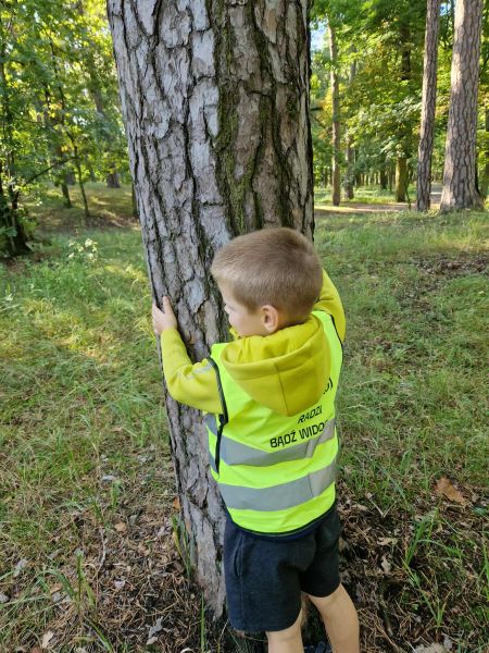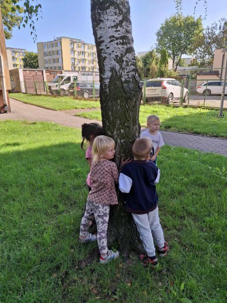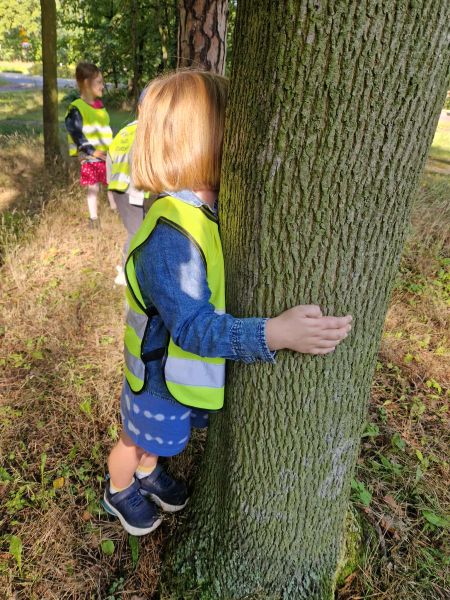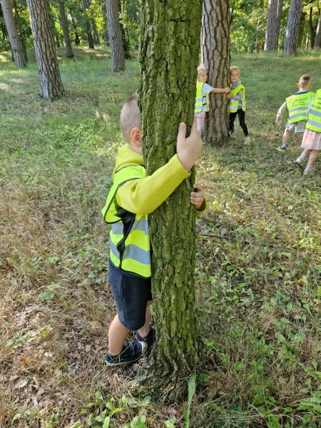 „Przytul się do drzewa” – ogólnopolska akcja Strażników Lasów. Dzieci z grupy Motyle i Zające wzięły udział w bardzo ważnej akcji, polegającej na przytulaniu drzew:) Hasło przewodnie brzmiało: „Otoczmy drzewa swoją miłością i pokażmy, że pożarom lasów mówimy stanowcze NIE!” Przedszkolaki tuląc się do drzew dowiedziały się jak dużym problemem są pożary lasów, które najczęściej spowodowane są działaniem człowieka oraz jak bezpiecznie zachowywać się w lesie. Był to przyjemny dzień z miłymi doznaniami. Dzieci do przedszkola wróciły w bardzo dobrych humorach.