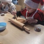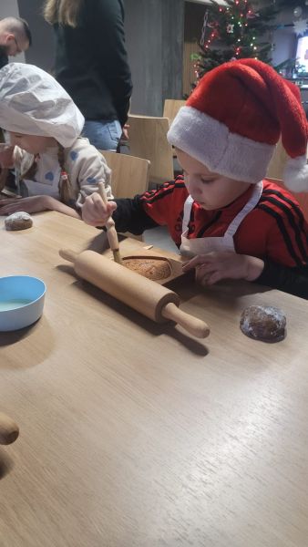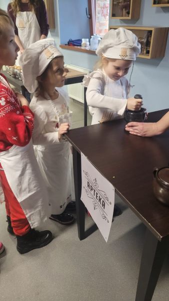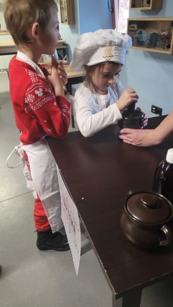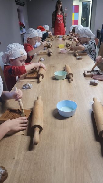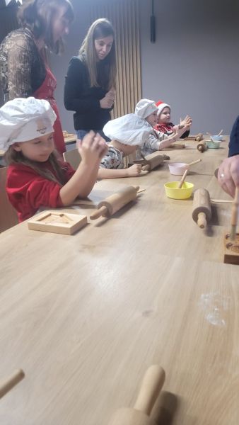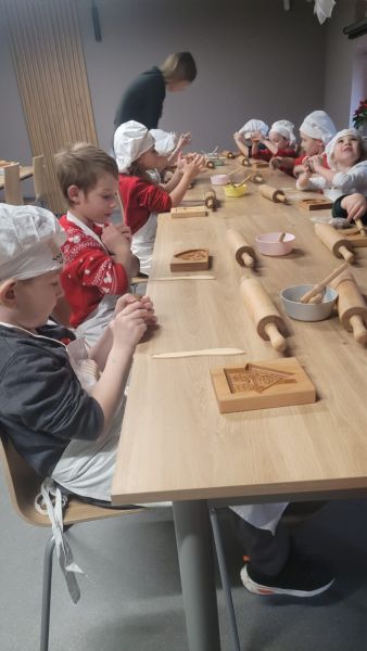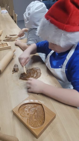 Dzieci z grupy „Sowy” 5 grudnia udały się do Muzeum Handlu Wiślanego. Przedszkolaki poznały tradycję wypiekania pierników, miały okazję utrzeć w moździerzu przeróżne przyprawy, których zapach przepięknie się unosił. Dzieci wałkowały, formowały i wycinały własne pierniki. Gdy pierniki wypiekały się w piecu, Sowy wykonały długi kolorowy łańcuch, który ozdobił naszą przedszkolną choinkę.