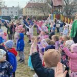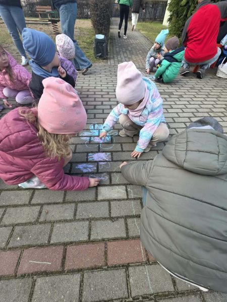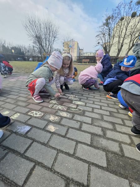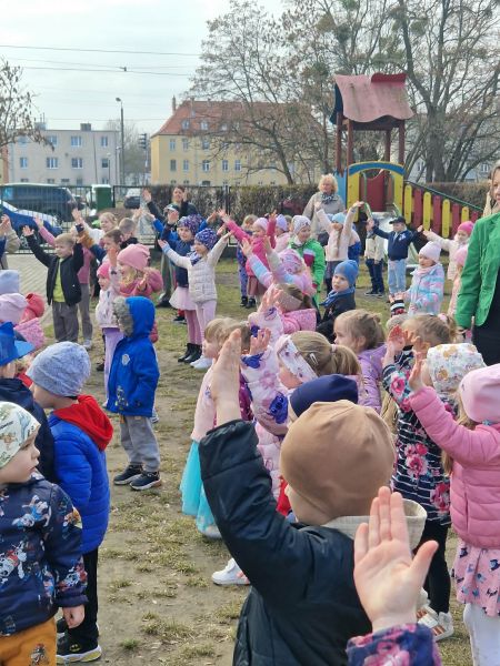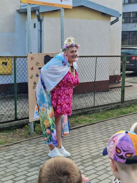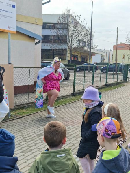 Dzisiaj 20.03. w naszym przedszkolu czekało na dzieci mnóstwo wrażeń. Przedszkolaki miały do wykonania ciekawe zadania. Przygotowały je bohaterki dzisiejszej uroczystości Pani Zima oraz Pani Wiosna. Każda grupa musiała dotrzeć do pewnych miejsc, gdzie ukryte były koperty z dalszymi wskazówkami. Były to również miejsca, które znajdowały się poza terenem placówki. W międzyczasie maluchy zbierały kwiatki oraz motylki napotkane na swojej drodze. Dzieci bardzo przeżywały poszukiwania, widać było duże emocje oraz wielki entuzjazm. Po powrocie do ogrodu przedszkolnego, kolejnym zadaniem było udekorowanie sukni Pani Wiosny. Następnie wszyscy wspólnie zatańczyli taniec przy wesołych rytmach piosenki. Na koniec teren przedszkolny zyskał wiosenny klimat. A to dzięki naszym zdolnym przedszkolakom. Kolorowe kwiaty oraz słoneczka pojawiły się w różnych miejscach na chodniku. Tym oto akcentem zakończono dzisiejsze świętowanie:)