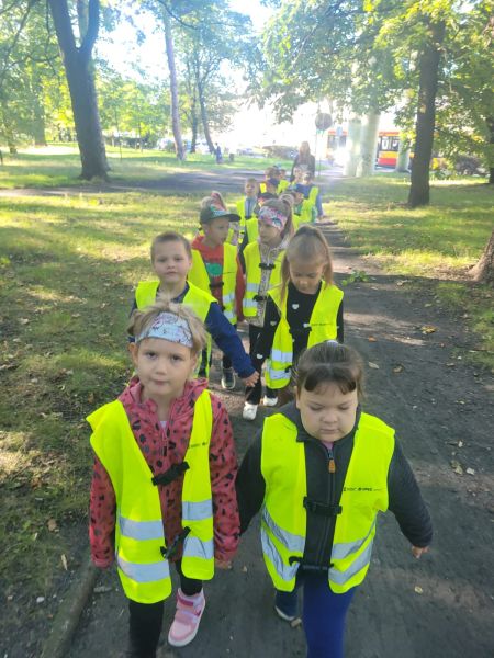 22 wrześniagrupa „Sowy” wybrała się na spacer do pobliskiego parku. Podczas spaceru przedszkolakom przypomniane zostały podstawowe zasady ruchu drogowego. Dzieci z zangażowaniem odpowiadały na pytania dotyczące bezpieczeństwa na drodze. W praktyce przećwiczyły bezpieczne poruszanie się w ruchu ulicznym.