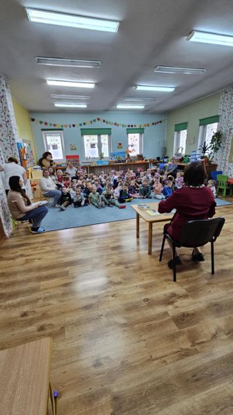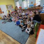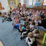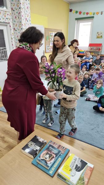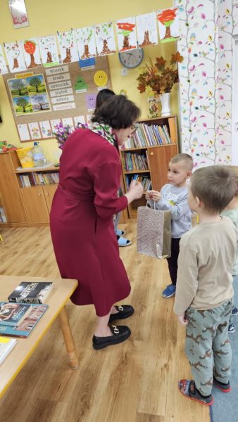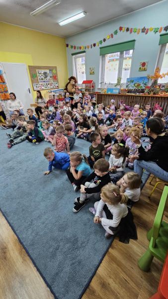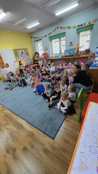 24 października w naszym przedszkolu odbyło się spotkanie autorskie z Panią Ewą Czaczkowską historykiem, dziennikarką, pisarką. Pani Ewa przybliżyła dzieciom na czym polega jej praca, odpowiedziała na szereg pytań związanych z jej twórczością, pracą zawodową. Przedszkolaki wysłuchały także bajki autorki pt. „Wiewiórka Bogna”. Całe spotkanie przebiegało w radosnej, pełnej życzliwości atmosferze.