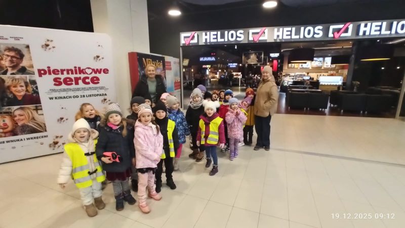 Dnia 19 grudnia dzieci z grupy „Tygryski” , „Kubusie”i „Sowy” wybrały się do kina na film familijny pt. „Mysz- Masz na Święta”. Dzieci z zaciekawieniem obejrzały cały film, nie zabrakło śmiechu i wzruszenia. Po powrocie przedszkolaki podzieliły się swoimi odczuciami- myszka- jedna z głównych bohaterów skradła nie jedno przedszkolne serduszko.