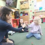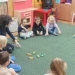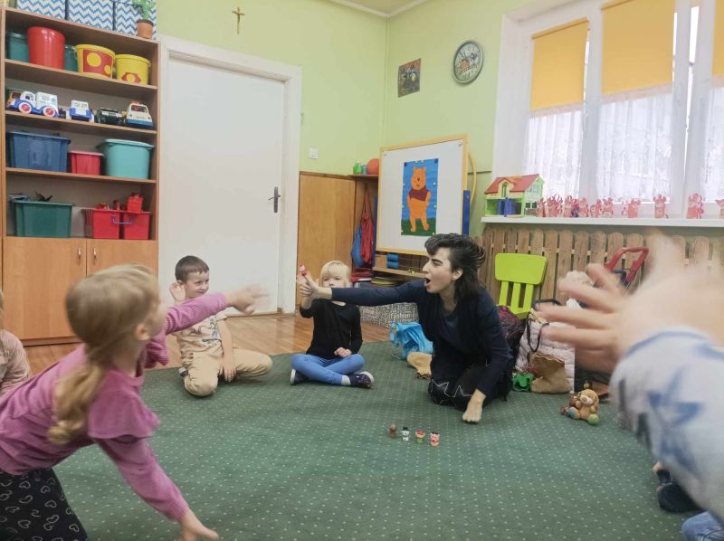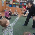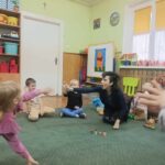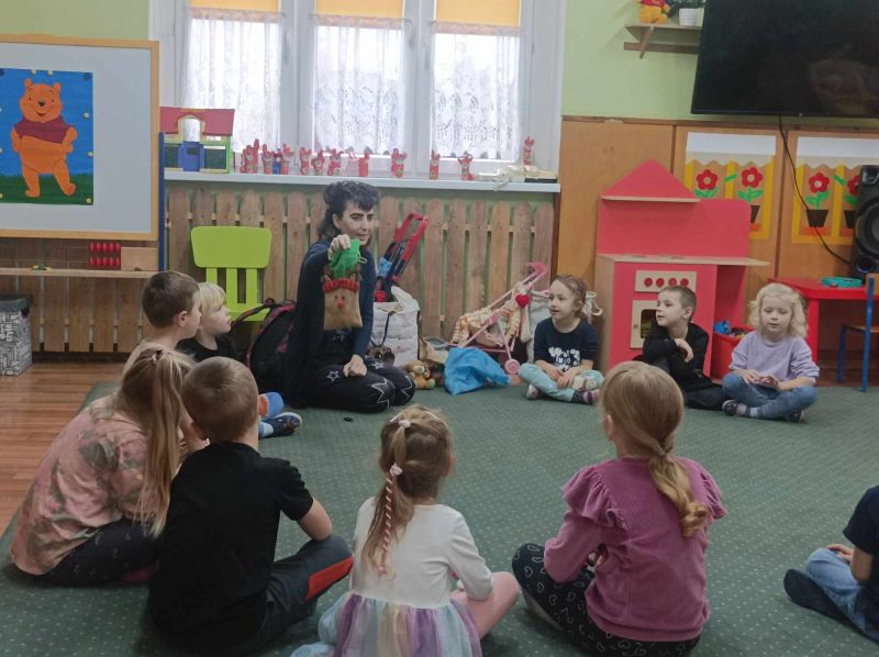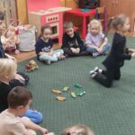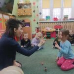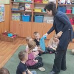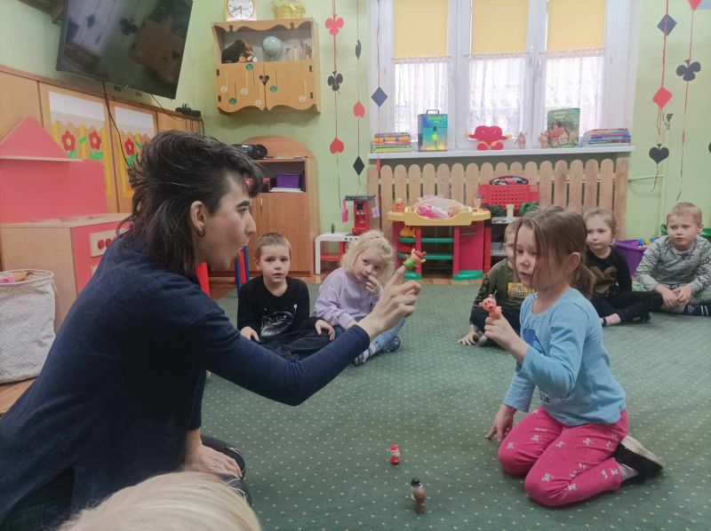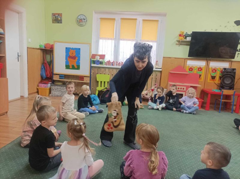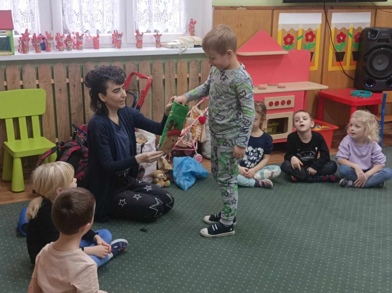 Dnia 29 listopada (piątek) w grupie Krecików w budynku przy ulicy Kalinkowej na języku angielskim zainicjowaliśmy blok zajęć o tematyce świątecznej. Dzieci zaznajomiły się z nowymi bohaterami zabaw: Świętym Mikołajem (Santa Claus), Reniferem (Reindeer), Elfem (Elf), Bałwankiem (Snowman) i Piernikowym Ludkiem (Gingerbread Man). Z wybranymi postaciami wymieniliśmy się uprzejmościami, witając się słowami „Hello…”. Dzieci poznały również nowy instrument, o charakterystycznym, świątecznym brzmieniu – janczarki, czyli popularne dzwoneczki (bells). Wspólnie zagraliśmy też pierwszą bożonarodzeniową anglojęzyczną piosenkę „We wish you a Merry Christmas”. Podczas zajęć wszystkie dzieci wykazały się ogromnym zaangażowaniem. Chętnie poznawały zawartość świątecznych skarpet, próbując wcześniej odgadnąć, jakie niespodzianki się w nich kryją. Małemu Mikołajowi na pewno spodobało się to, jak Kreciki pięknie bawią się na języku angielskim – a ten już wypatruje i czeka, by 6 grudnia zapełnić dziecięce buciki…