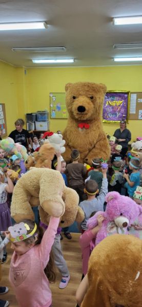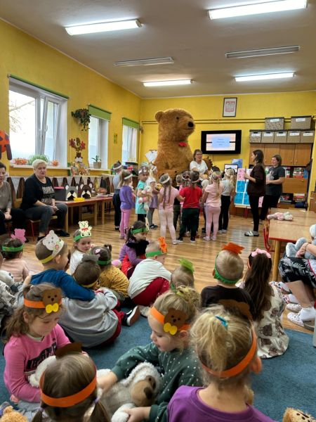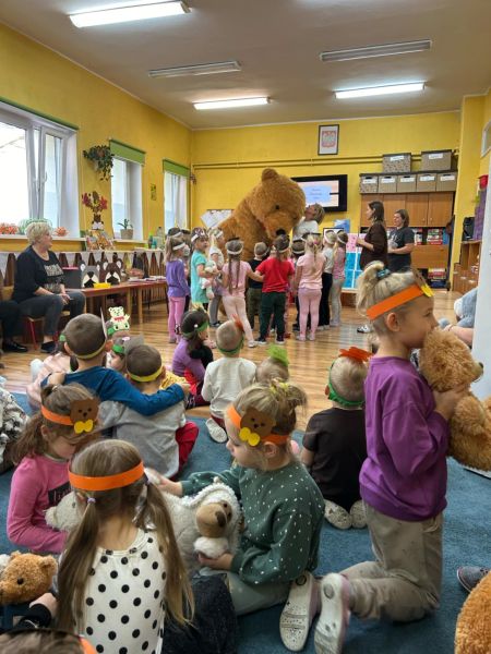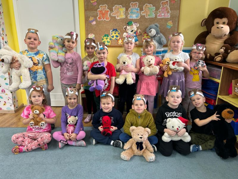 Dnia 25.10.2024.dzieci z naszego przedszkola świętowały Światowy Dzień Pluszowego Misia. Brały udział w licznych zabawach i konkursach.Przedszkolaków odwiedził także niezwykły gość – pluszowy miś, który został powitany okrzykami radości. To był dzień pełen niespodzianek i radości