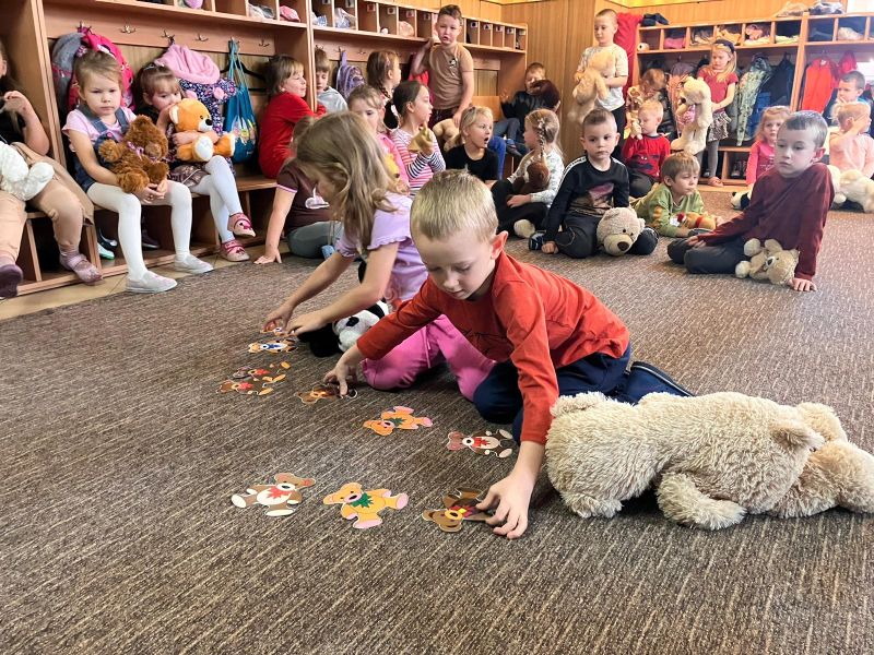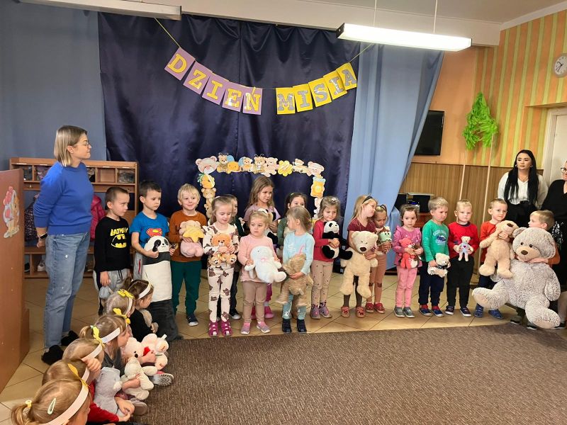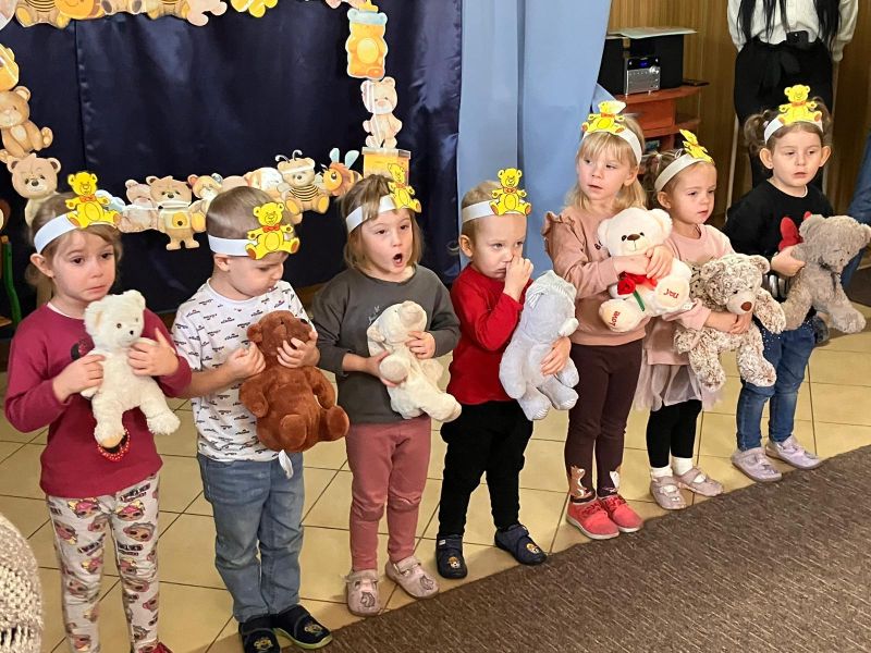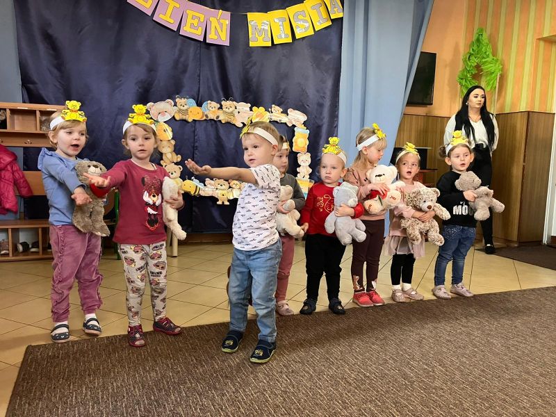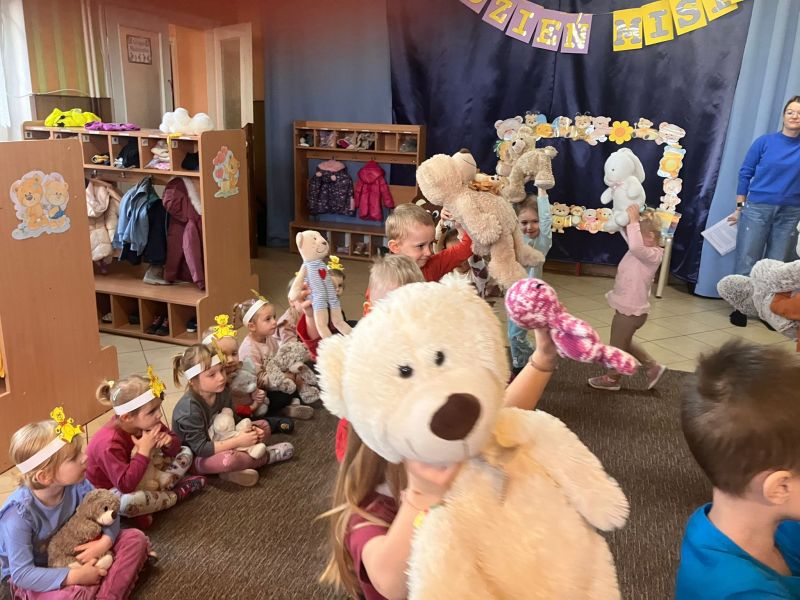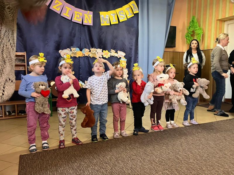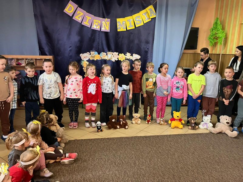 Jak co roku obchodziliśmy w naszym przedszkolu Dzień Pluszowego Misia.Ten dzień przyniósł wiele radości. Dzieci prezentowały swoje ulubione misie przyniesione z domu, też poznawały znane postacie z bajek np. Miś Uszatek, prezentowały swoje umiejętności przed publicznością😉