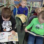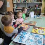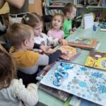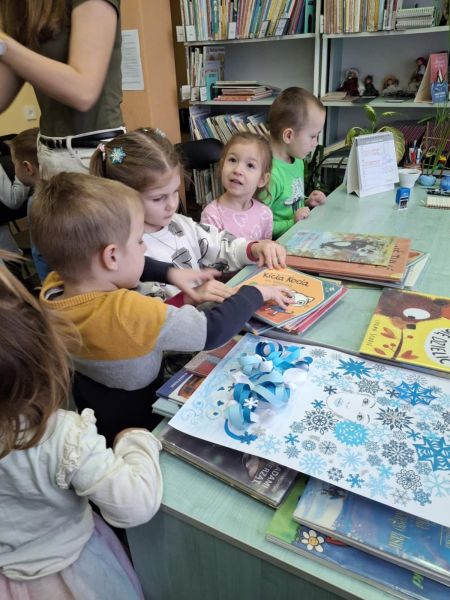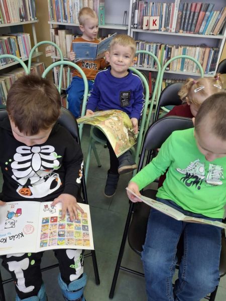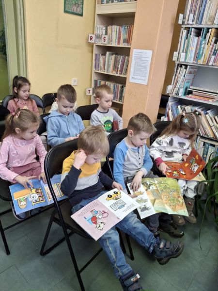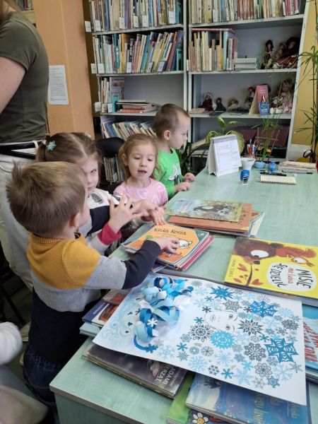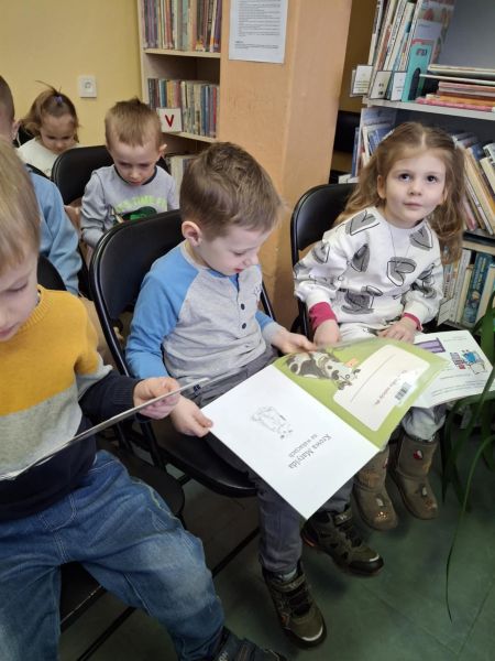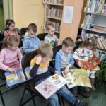 Dnia 27 lutego dzieci z grupy „Tygryski” po raz kolejny uczestniczyły w zajęciach w bibliotece. Przedszkolaki bardzo lubią cykliczne spotkania, na których mają możliwość wysłuchania kolejnej wybranej przez siebie bajki oraz możliwość oglądania książek poświęconych dla najmłodszych.