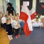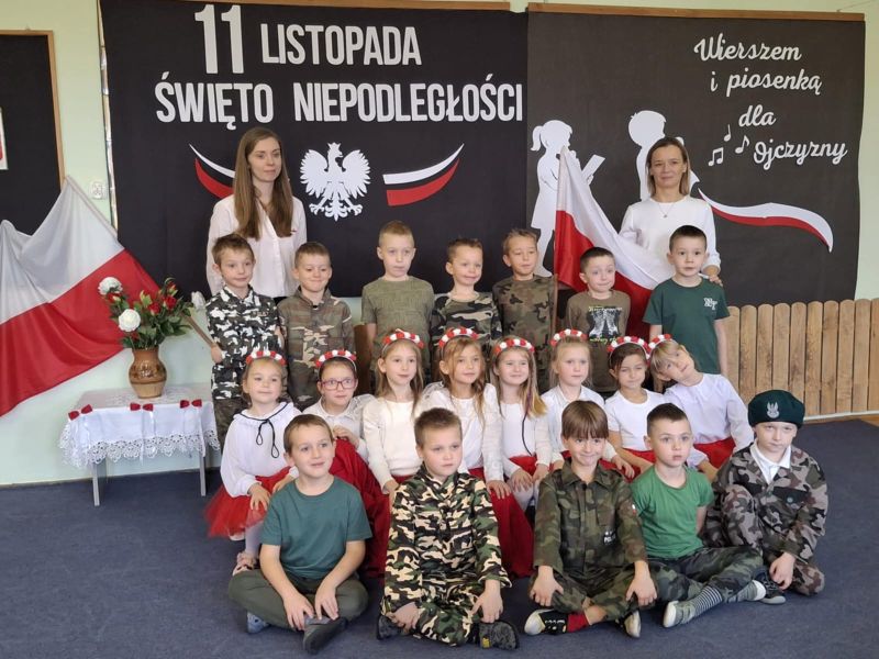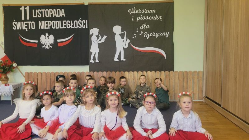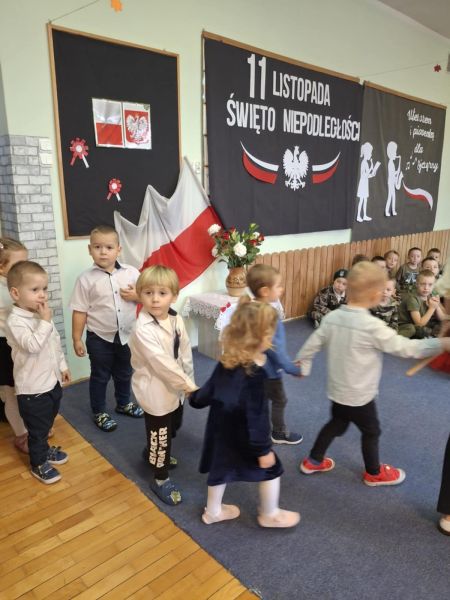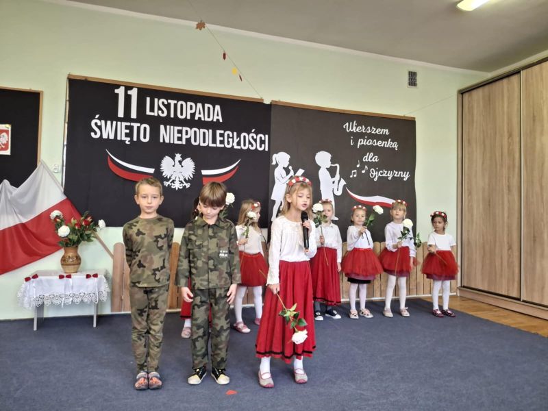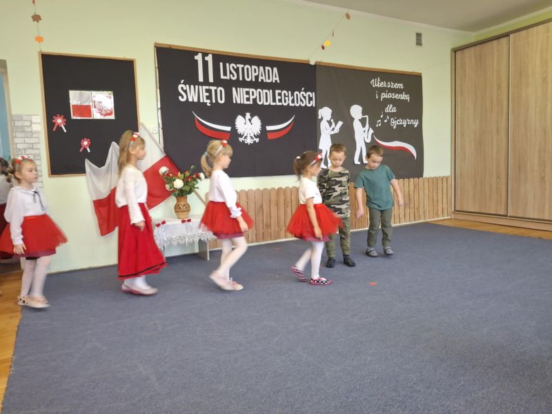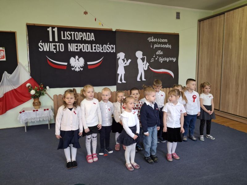 Dlatego też 7 listopada dzieci z grupy „Sowy” przygotowały uroczystość z okazji Narodowego Święta Niepodległości. Podczas występu dzieci zaprezentowały montaż słowno-muzyczny o treściach patriotycznych. Przedszkolaki z każdej z grup recytowały wiersze, śpiewały pieśni opowiadające o historii Polski, ale także te namawiające do dostrzegania piękna ojczyzny. Wszyscy przystąpiliśmy również do wspólnego odśpiewania hymnu państwowego.