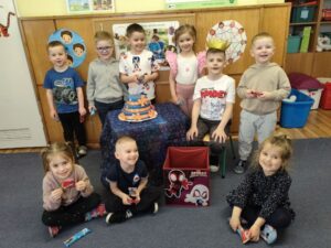 Już od rana koledzy i koleżanki z grupy przygotowują się do świętowania. Najczęściej po zajęciach rozpoczynamy świętowanie. Stajemy w kole, następnie przystępujemy do koronacji gospodarza tego dnia, odśpiewujemy mu „Sto lat”, po czym ustawia się dłuuuga kolejka do składania życzeń „wszystkiego najlepszego” potem całuski, zrobienie wspólnego zdjęcia i pałaszowanie smakołyków przygotowanych przez rodziców. Mamy nadzieję, że dzień ten na długo zapadnie w pamięci naszych Pociech. Każde urodziny to również okazja do uchwycenia pięknych chwil na zdjęciach. Regularnie będziemy aktualizować ten post, dodając fotografie z urodzin Waszych dzieci, byście mogli zobaczyć, jak Wasze pociechy spędzają czas w przedszkolu. Zdjęcia te są nie tylko wspaniałą pamiątką, ale również pokazują, jak wielką radość sprawiają takie chwile naszym przedszkolakom.