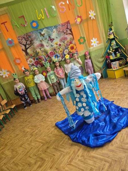 W piątek 20 marca wszystkie dzieci z naszego przedszkola świętowały Pierwszy Dzień Wiosny. Uroczystość rozpoczęła się od pożegnania Zimy, której symbolem była Marzanna.