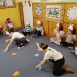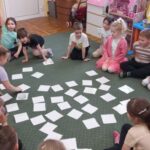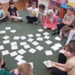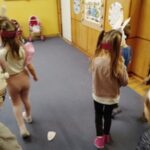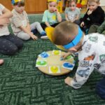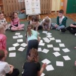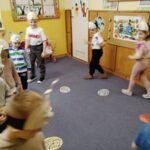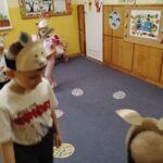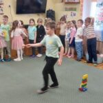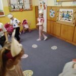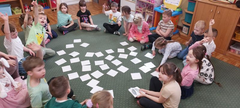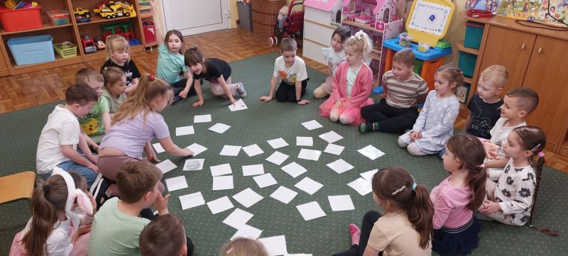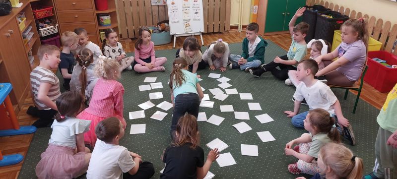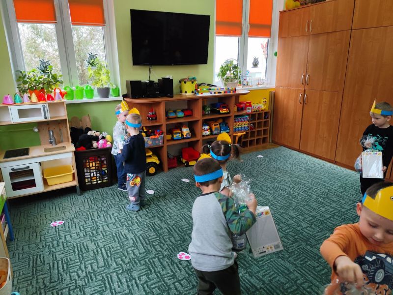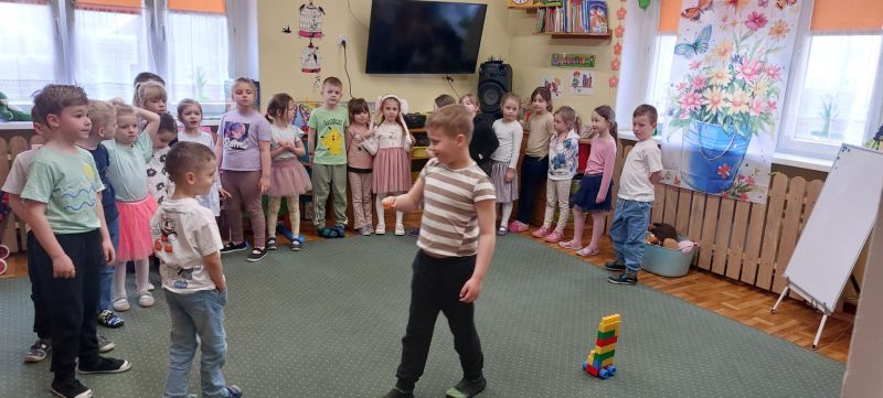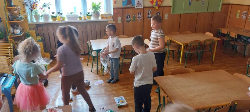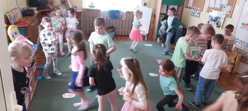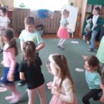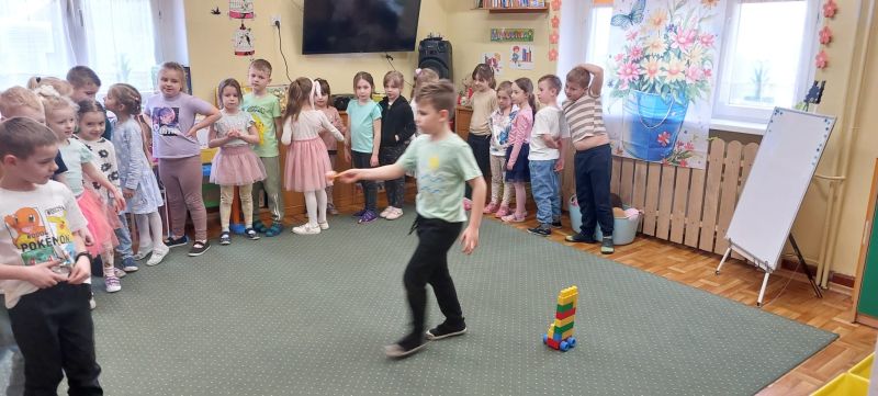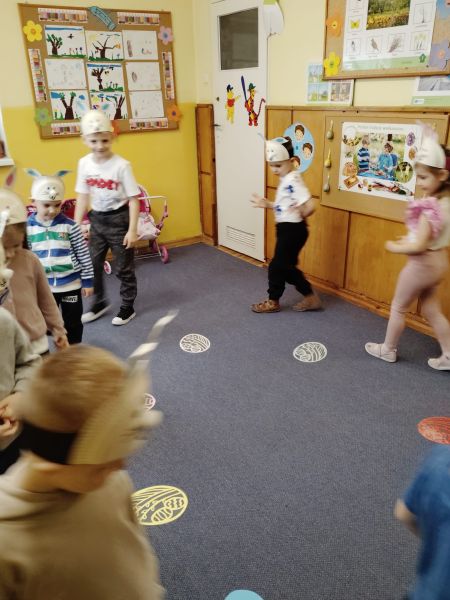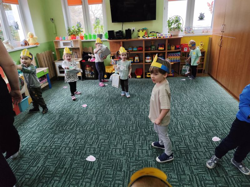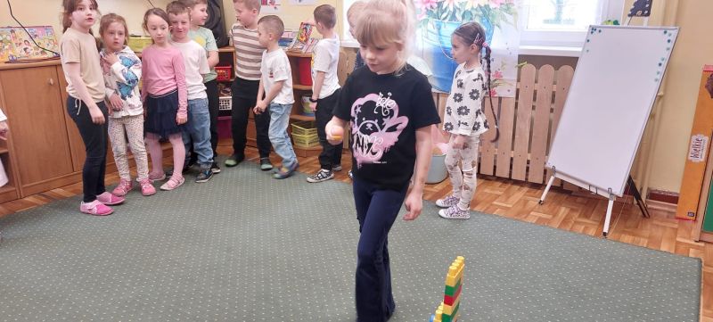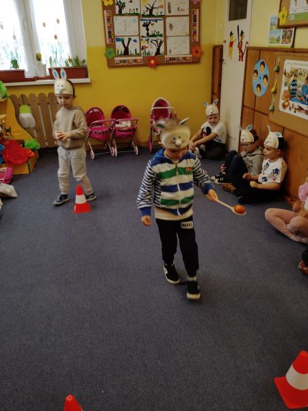 Zajączek w przedszkolu to radosna tradycja wielkanocna podczas której dzieci z grupy ,,Żabek” wykonywały różne zajączkowe zadania, które poprzedziły szukanie ukrytych w sali upominków. Dzieci rozwiązywały zagadki o tematyce wiosennej i świątecznej, które znajdowały się na kolorowych pisankach, wykonywały zadania sprawnościowe, śpiewały piosenki o zajączku i ilustrowały je ruchem. Był to dzień pełen emocji i wrażeń oraz zadań i niespodzianek, który wprowadził przedszkolaki w świąteczny nastrój.