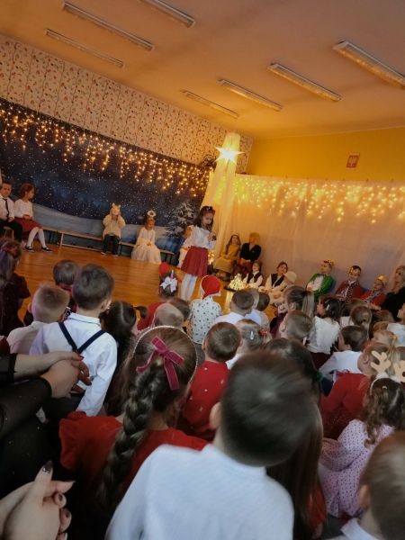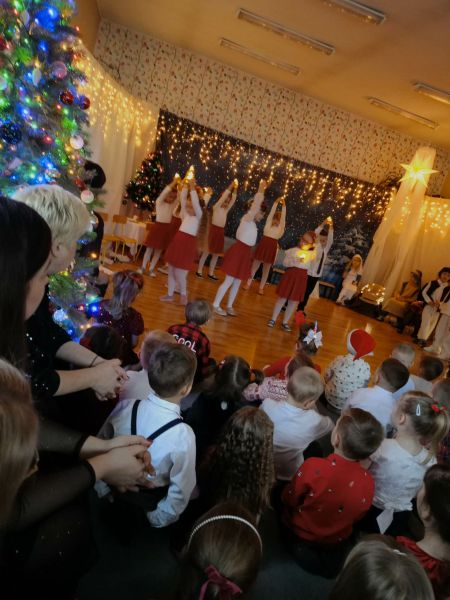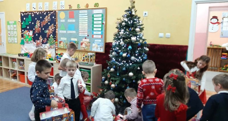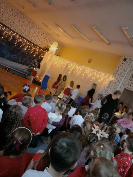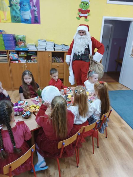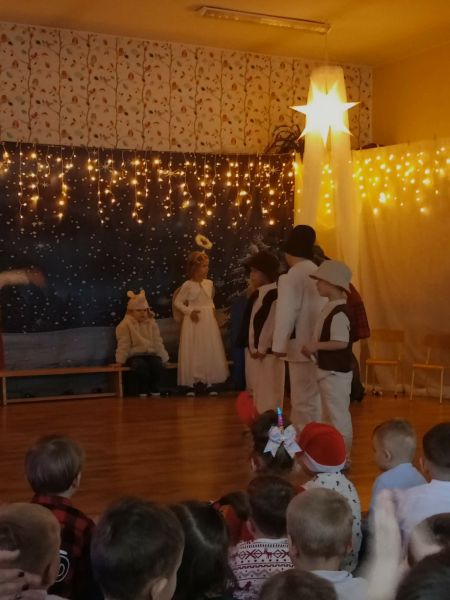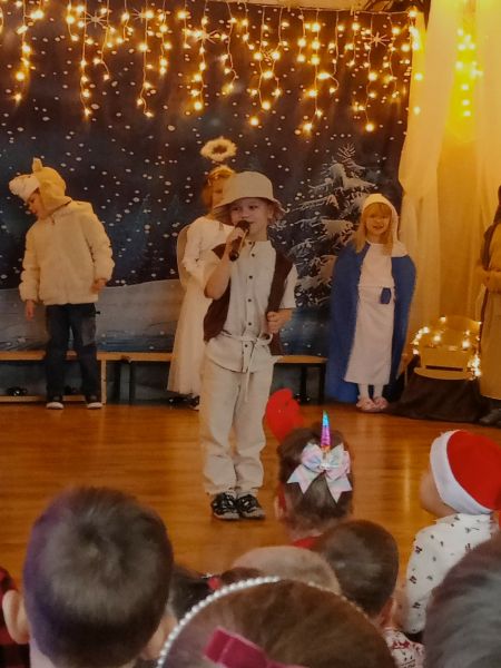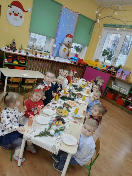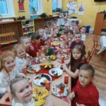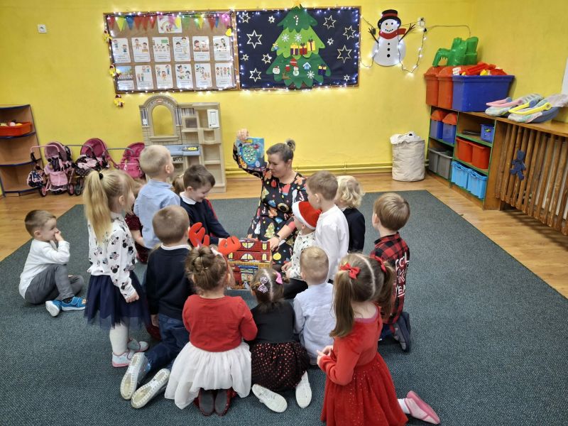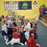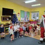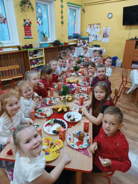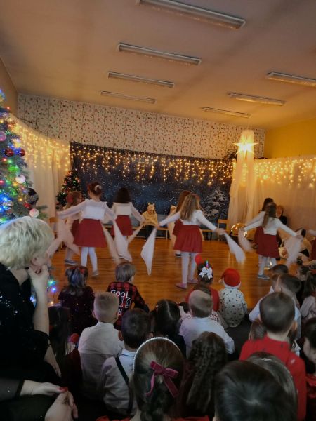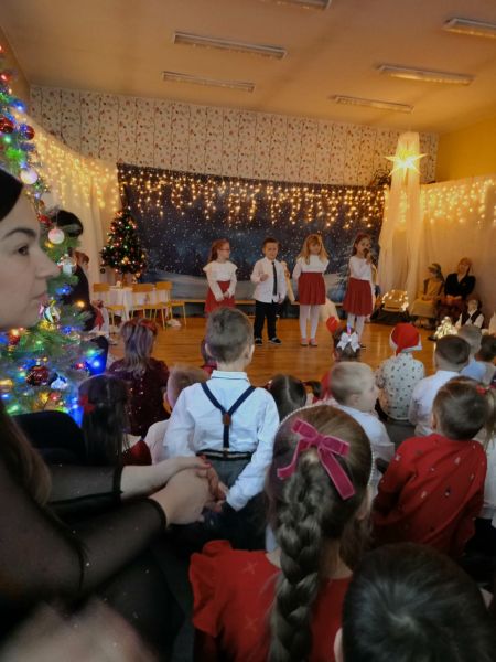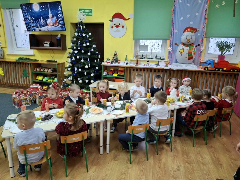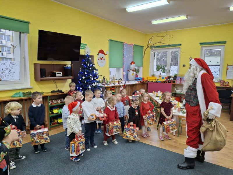 W dzisiejszym dniu 17.12.2025 r. w naszym przedszkolu nadszedł magiczny czas. Rozpoczął go przepiękny świąteczny występ przygotowany przez grupę Krasnali. Wszyscy odśpiewali wspólnie pastorałkę, która dodała wyjątkowego klimatu. Przedszkolaków odwiedził również długo wyczekiwany Mikołaj. Dzieci otrzymały świąteczne prezenty oraz usiadły do wigilijnego stołu. Wspaniały klimat Świąt utrzymywał się do końca dnia. Te miłe chwile na pewno na długo zagoszczą w sercach przedszkolaków.