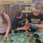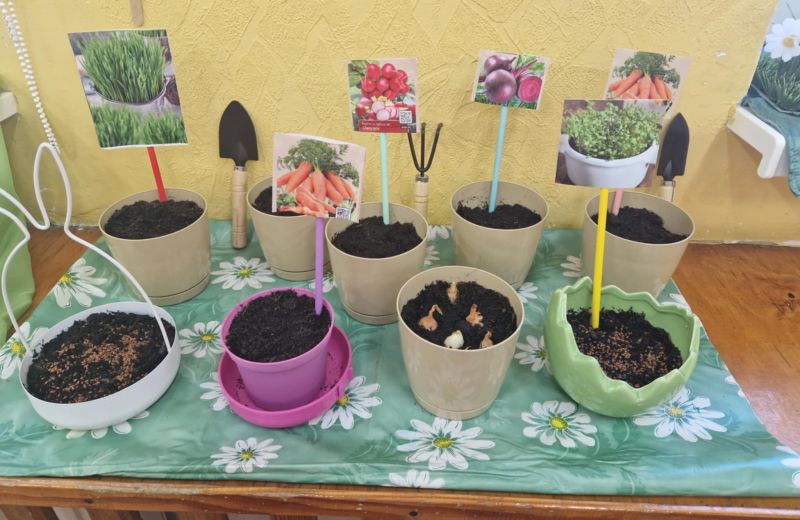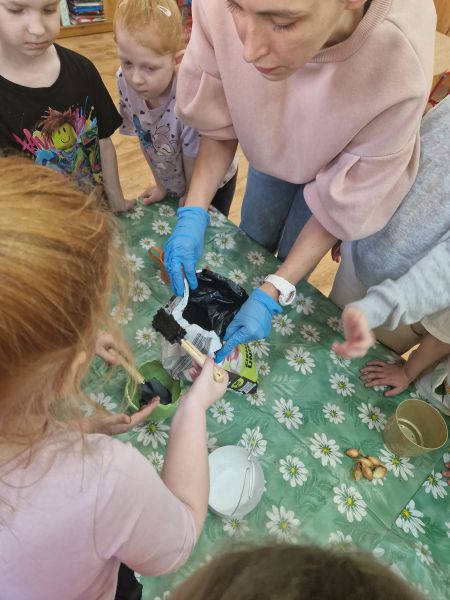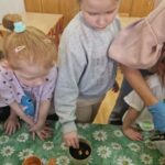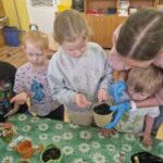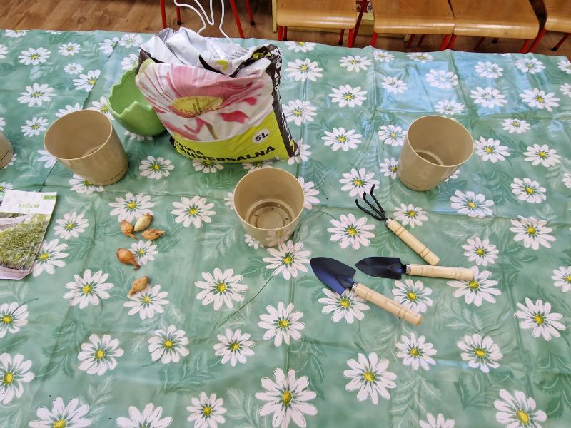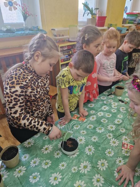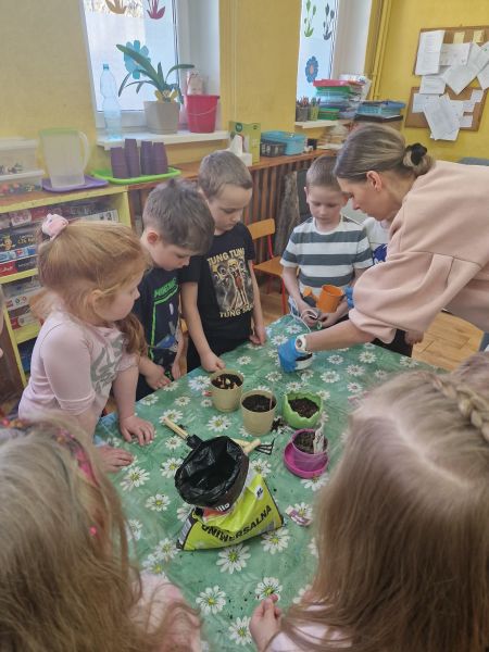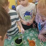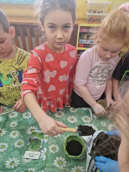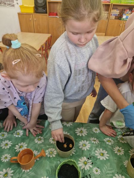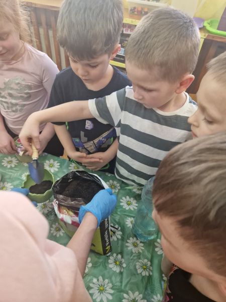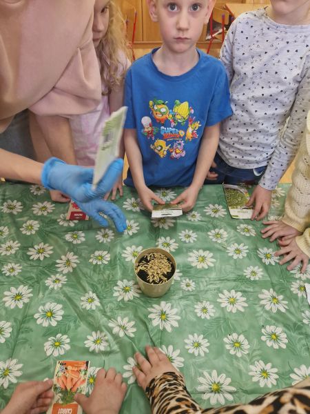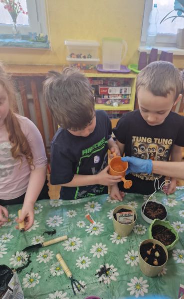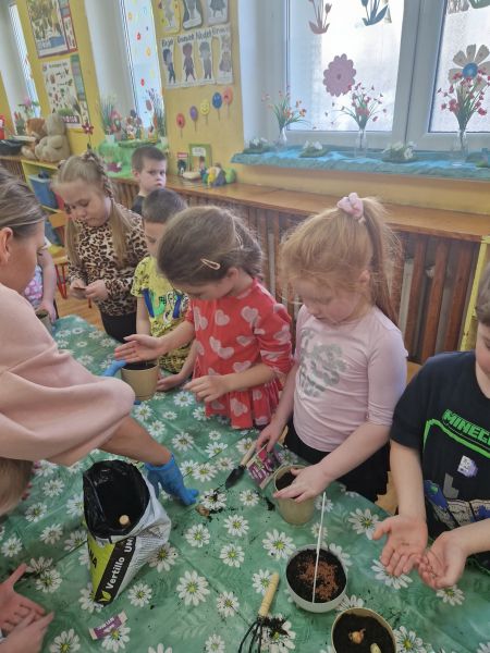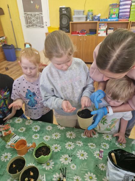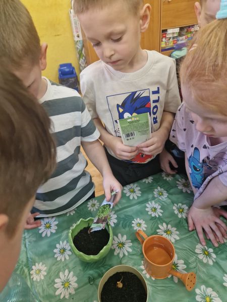 Dzisiaj 18.03.2026r dzieci z grupy Motyli zamienili się w małych ogrodników. Pod czujnym okiem swoich Pań, siały nasionka oraz sadziły cebulki. Były to m.in. nasiona rzeżuchy, marchwi, buraka, rzodkiewki oraz owsa. Przedszkolaki były chętne do pracy oraz bardzo zaangażowane. Nie mogły się doczekać na swoją kolej. Na koniec pracy, roślinki trzeba było podlać oraz ustawić przy oknie. Dzieci dowiedziały się czego rośliny potrzebują do życia. Teraz trzeba cierpliwie czekać aż pojawią się pierwsze kiełki:)