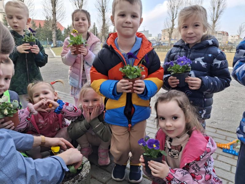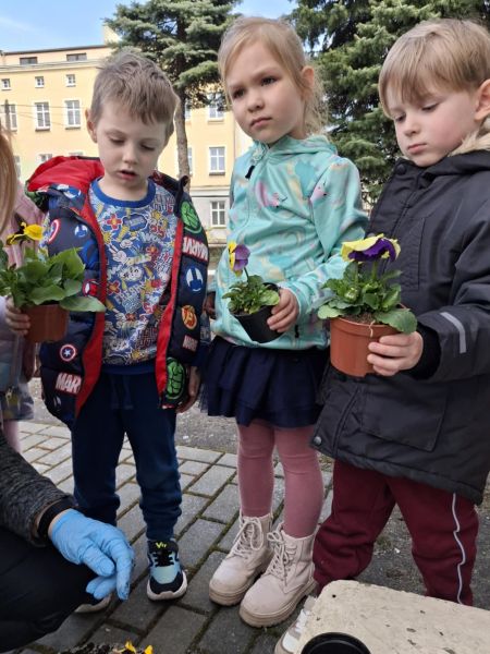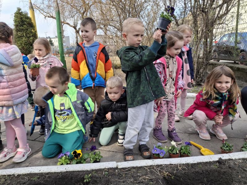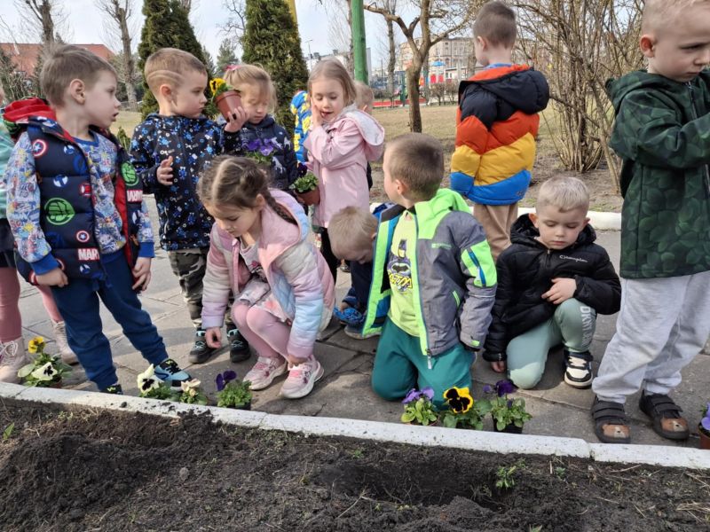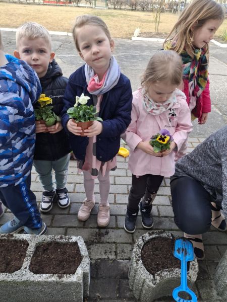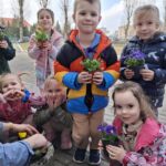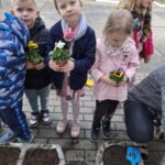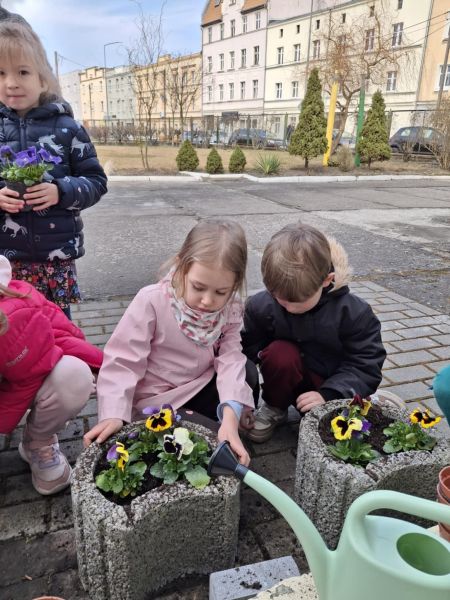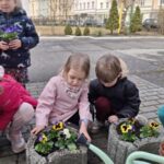 Z okazji Powitania Wiosny dzieci udały się do przedszkolnego ogrodu, aby posadzić w nim kwiaty. Przedszkolaki z wielkim zaangażowaniem brały udział w upiękaszaniu naszego ogródka. Dzięki bezpośredniej obserwacji i pielęgnacji roślin przedszkolaki będą mogły poszerzać wiadomosci dotyczące warunków koniecznych do rozwoju i wzrosty roślin. Zajęcie to przyniosło dzieciom wiele radości i uśmiechu.