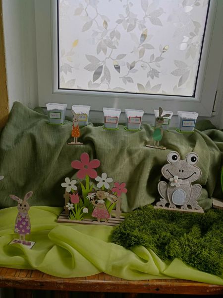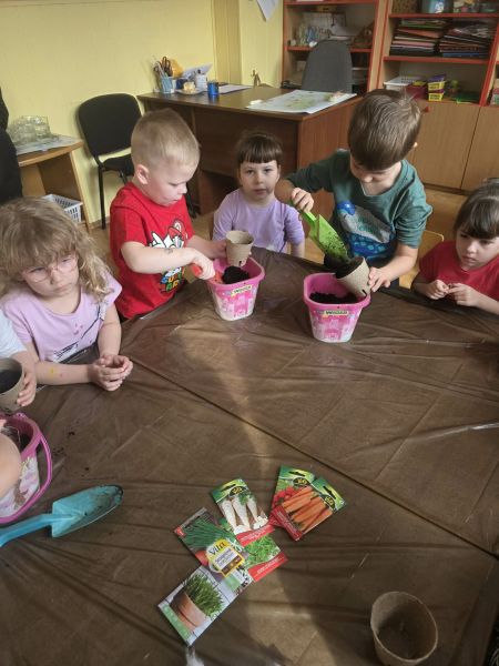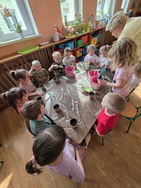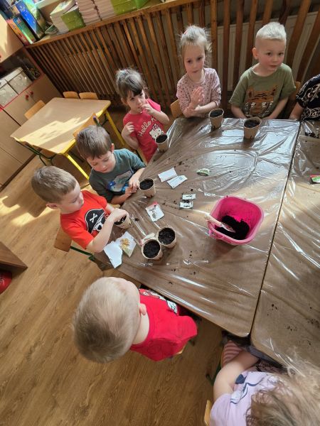 W dzisiejszym dniu 26.03.2026r Zajączki wcieliły się w role ogrodników. Dzieci założyły hodowlę roślin. Zapoznały się z wyglądem nasion. Wysiewały nasionka do pojemników. Następnie ustawiły doniczki na parapecie w słonecznym miejscu. Teraz czas na obserwację wzrostu sadzonek:)