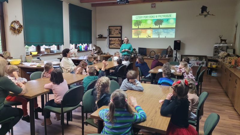 Dzieci z grupy Sowy i Kubusie wybrały się do CEE na zajęcia pt „Cztery pory roku w przyrodzie”. Nabywanie i wzbogacanie wiedzy przedszkolaków poza przedszkolem jest istotnym elementem. W CEE dzieci w bardzo ciekawy sposób wzbogaciły swoją wiedzę na temat otaczającej przyrody i jej zmian w ciągu roku. Dużo opowiedzianych ciekawostek przez prowadzących wzbuciło zainteresowane wśród naszych przedszkolaków. Poza przekazaną wiedzą, Dzieci wykonały przepiękne prace plastyczne.