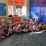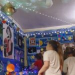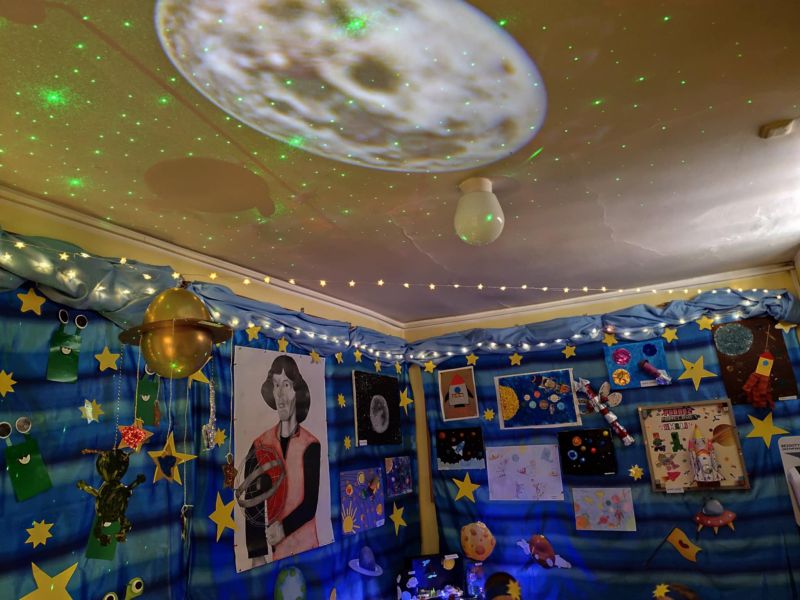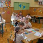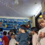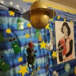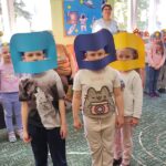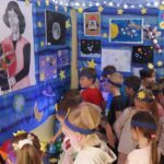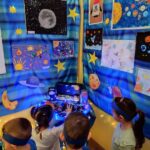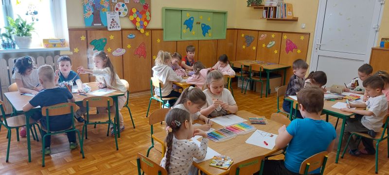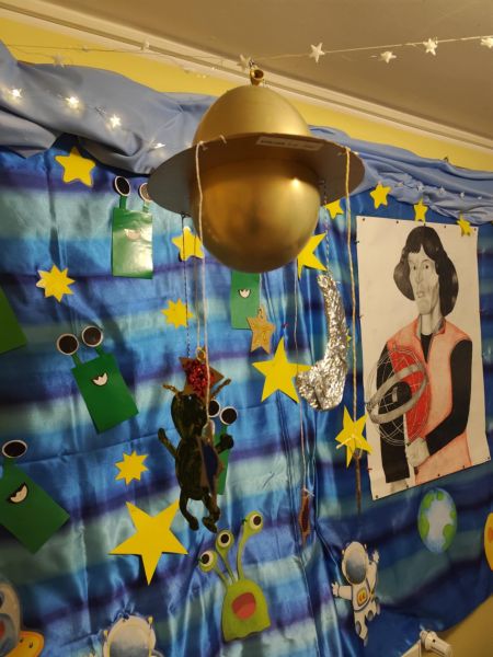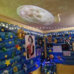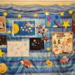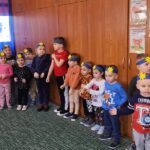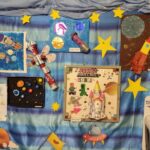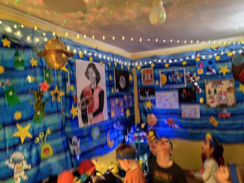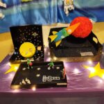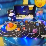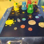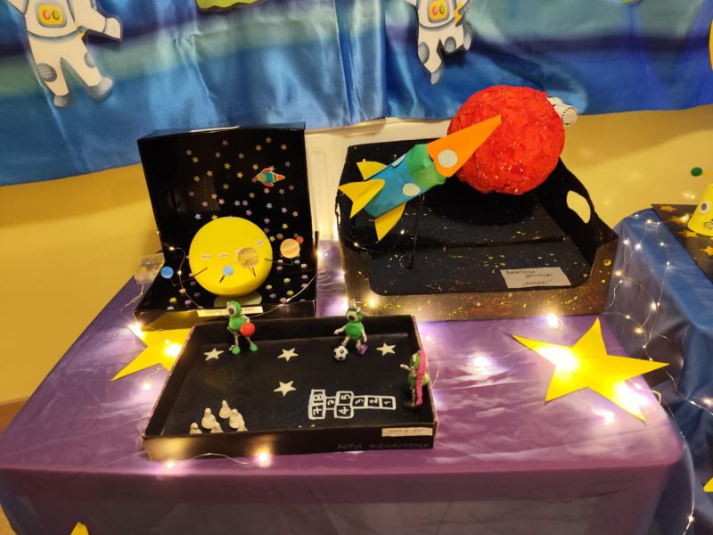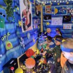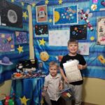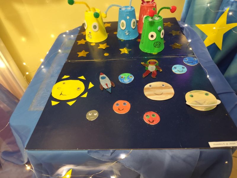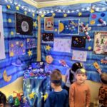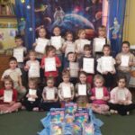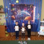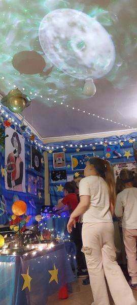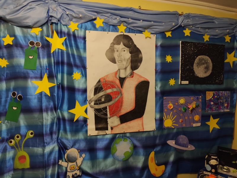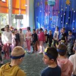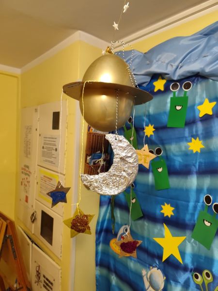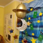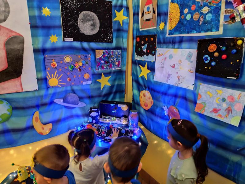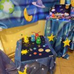 W naszym przedszkolu uroczystość pt. „Zabawy w kosmosie” rozpoczęła się od… pakowania plecaka. Znalazły się w nim m.in.: latarka, bidon, telefon, gry, pluszak… I zaczęła się na niby wyprawa w kosmos… Dzieci załoźyły kosmiczne kombinezony, z gr. JEŹYKI zostało wybrane dowództwo statku kosmicznego, któremu imię-KOPERNIK 2026-nadała Pani Dyrektor, a po uroczystym pożegnaniu statek ruszył w kosmos. Uczestnicy wyprawy poznawali i utrwalali wiadomości nt. planet układu słonecznego, naśladowali ich ruch po orbitach wokół słońca, odkrywszy obecność 'obcego’ na pokładzie, nauczyły go rozpoznawania emocji i uczyć. Zgrabnie omijając deszcz tęczowych meteorytów, wróciły na Ziemię. Na zakończenie uczestnicy wyprawy brawurowo odpowiadali na pytania w krótkim quizie wiedzy o kosmosie. Zwieńczeniem przygody okazał się prezent od obcego-chrupki w kształcie gwiazdek.
