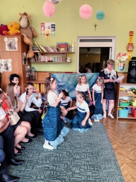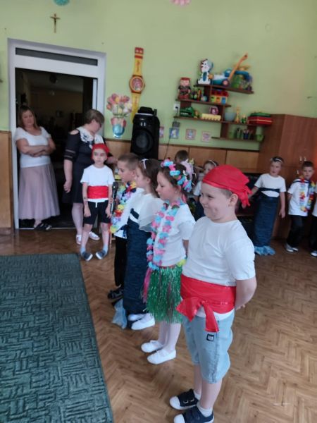 Dziesięć miesięcy wspólnych zabaw i zajęć, podróży po porach roku i żywiołach szybko minęło, aż nadszedł czas wakacji i pożegnań.  Zakończenie roku przedszkolnego to jedna z ważniejszych chwil w życiu każdego młodego człowieka. Dla jednych ta chwila oznacza po prostu wakacje, jednak są również Jeżyki  dla których zakończenie roku oznacza pożegnanie z przedszkolem, a co za tym idzie, rychłe przywitanie ze szkołą.  Wszystkich absolwentów żegnały młodsze Kreciki,  które jeszcze przez rok będą uczęszczać do naszego przedszkola. 4 lata wspólnej zabawy i pracy Jeżyki zakończyły przedstawieniem pt. „Morski przygody”  w którym zobaczyliśmy marynarzy i piratów, śliczne Hawajki i piękne syreny. Dzieci przedstawiły Taniec piratów i marynarzy  oraz piękny taniec z szarfami.  Za które zostali nagrodzeni ogromną ilością braw.  Następnie były wiersze i piosenki. Na zakończenie jako podziękowanie dla Rodziców  dziewczynki zatańczyły piękny taniec ze swoimi tatusiami.        W przygotowanie uroczystości dzieci włożyły wiele pracy, a zaproszeni rodzice i Dyrekcja przedszkola docenili to gromkimi brawami. Na zakończenie uroczystości dzieci otrzymały upominki a także dyplomy ukończenia  przedszkola. Dziękujemy wszystkim dzieciom za ten wspaniały rok, rodzicom za zaangażowanie i każdą chwilę, kiedy mogliśmy wspólnie myśleć o naszych przedszkolakach. Absolwentom życzymy  wielu sukcesów i spełnienia marzeń, a wszystkim dzieciom bezpiecznych i radosnych wakacji. Pamiętajcie o nas, o swoim przedszkolu !